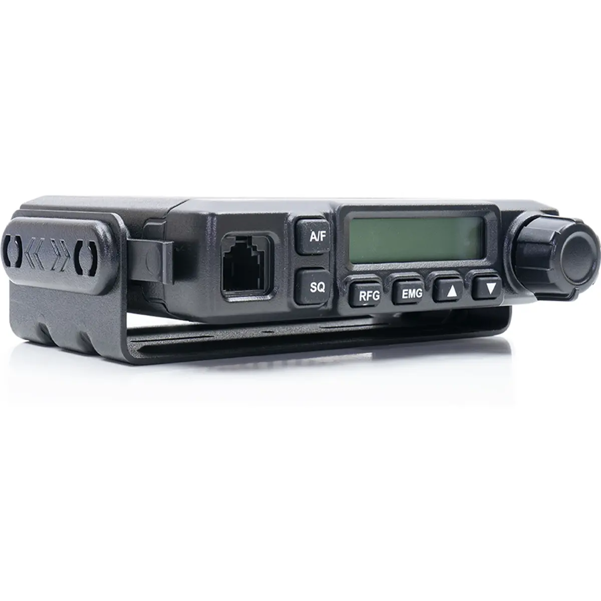 Estação rádio CB compacta com emissão de até 4W em AM/FM, ideal para uso móvel e discreto. Compatível com várias normas europeias e frequência de 26.965–27.405 MHz, com 40 canais. Apresenta ecrã multicolor (azul), squelch manual e automático digital, RF Gain ajustável e modo multibanda para adaptação a diferentes países. Inclui alimentação por ficha de isqueiro 12V, instalação em slot 1DIN, botão de canal de emergência, varredura automática de canais, S-Meter e tomadas para altifalante externo. Compacta, leve e pronta para montagem em veículo.
