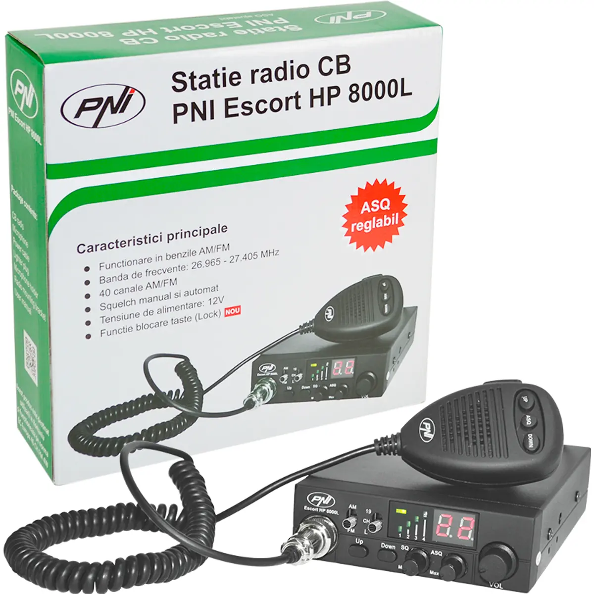 A estação de rádio CB PNI Escort HP 8000L destaca-se pelo seu design compacto, funções práticas e sistema ASQ ajustável que melhora significativamente a qualidade da recepção. É ideal para condutores que procuram uma solução eficaz e fiável para comunicações CB, mesmo em ambientes com elevado ruído ou interferência.