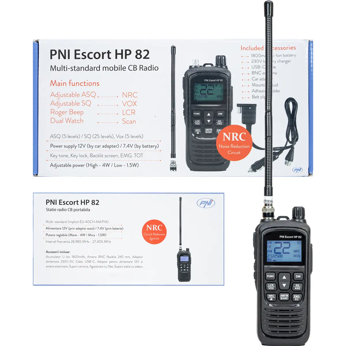 A estação CB portátil PNI Escort HP 82 combina mobilidade e versatilidade com funcionalidades avançadas, oferecendo comunicação fiável em várias normas europeias. Equipada com sistema NRC para redução de ruído, modos AM/FM, ASQ e squelch ajustáveis, esta estação é adequada tanto para uso móvel em viatura como portátil com bateria e antena BNC. Ideal para utilizadores que procuram alto desempenho em tamanho compacto.