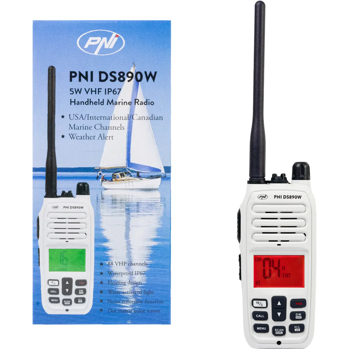 A PNI DS890 é uma estação marítima portátil compacta e robusta, ideal para garantir segurança e comunicação em ambientes náuticos. Com 88 canais em cada grupo (Internacional, Canadá e EUA), 10 canais meteorológicos e o canal 16 de emergência, oferece versatilidade, durabilidade e funcionalidades avançadas. O seu ecrã LCD de 1.8 polegadas, com 7 cores de fundo, assegura uma leitura clara em qualquer condição. A construção flutuante e a certificação IP67 tornam-na resistente e fiável mesmo nas situações mais exigentes.