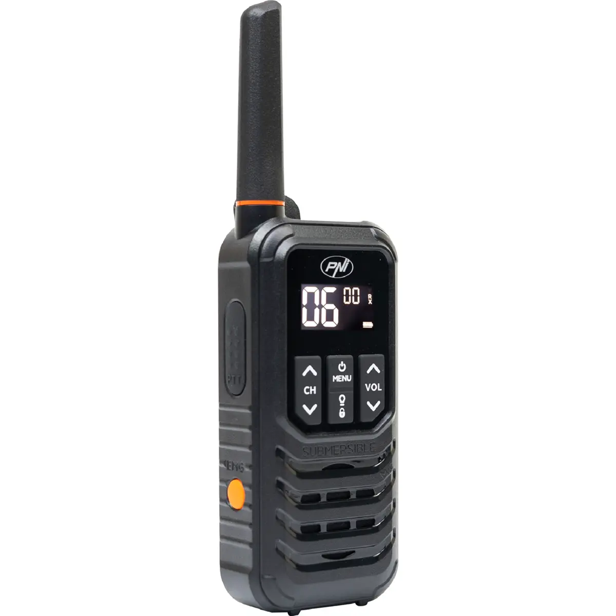 PNI PMR R80 PRO - Walkie-talkies 16 canais PMR446 10Km SOS/VOX c/ Lanterna + base de carregamento - IP67