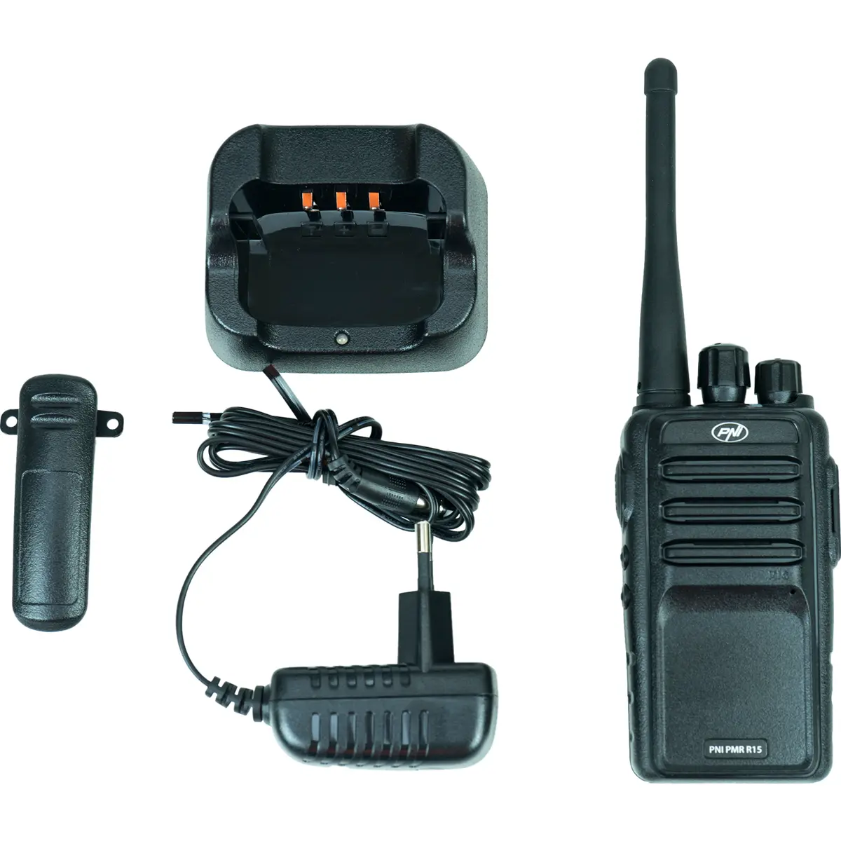 A PNI PMR R15 é uma estação de rádio portátil profissional que opera na frequência livre PMR446, acessível a todos, sem necessidade de licença. Adequada para uso pessoal ou profissional, permite comunicações eficazes em actividades ao ar livre, em estaleiros, em ambientes empresariais ou dentro de edifícios.