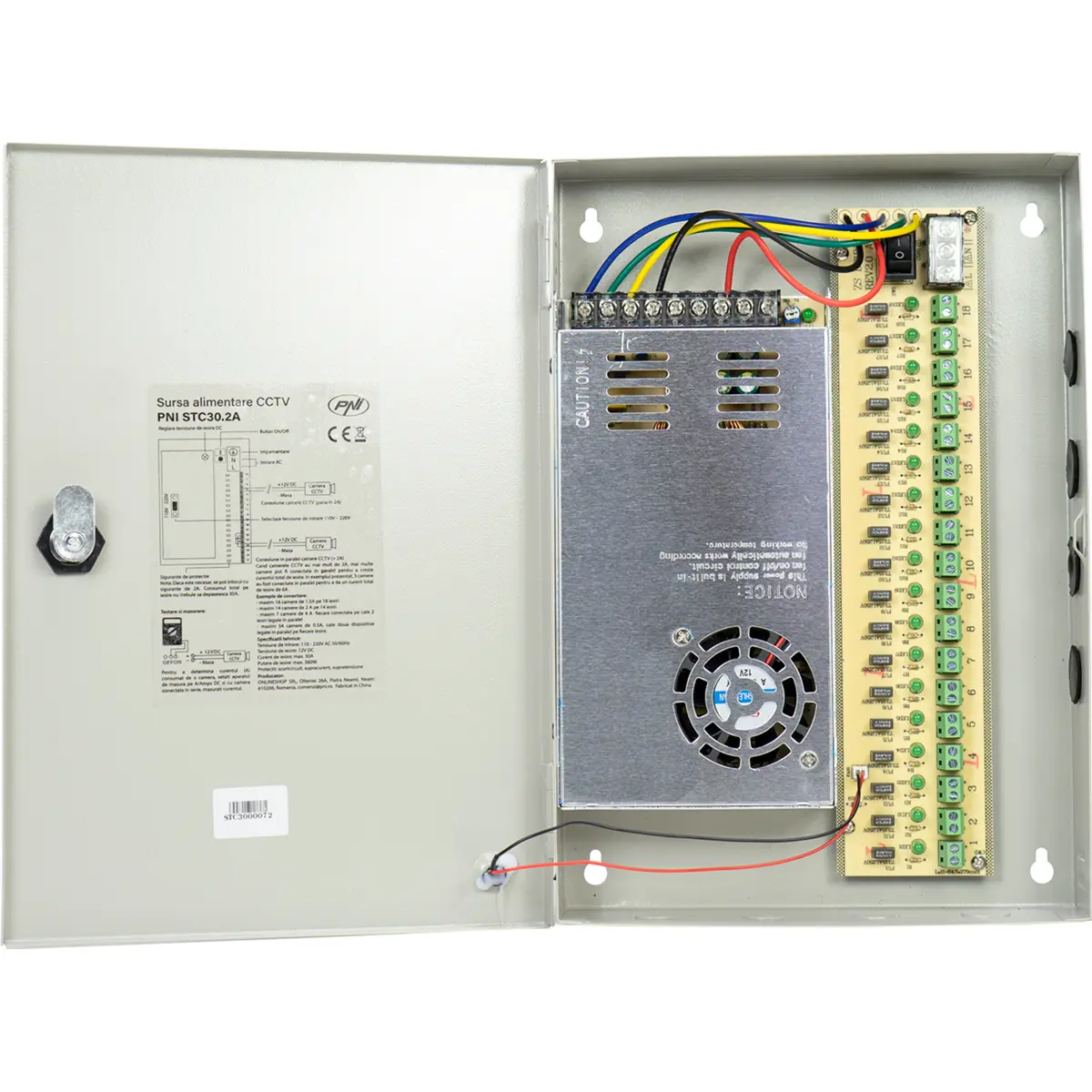 PNI STC30.2A - Fonte de alimentação CCTV em caixa metálica - 12V 30A 360W - 18 saídas