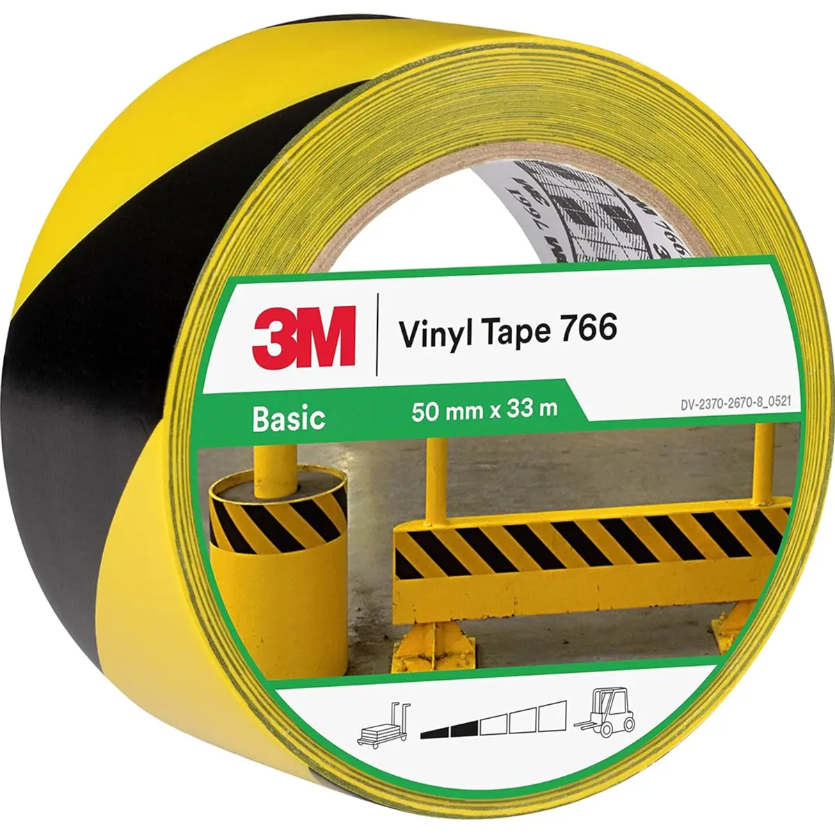 Fita de vinil com riscas pretas e amarelas, ideal para marcação de zonas de risco em fábricas, armazéns, hospitais e outros ambientes industriais. Substitui com vantagem a pintura em aplicações de marcação e segurança, com aplicação rápida e boa aderência a diversas superfícies.