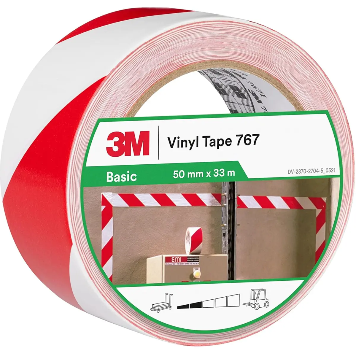 3M 767 - Fita em Vinil de marcação (chão/paredes) 50mm x 33M - Vermelho/Branco