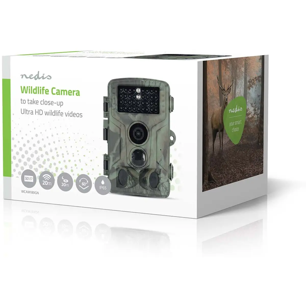 A câmara de vigilância e observação Nedis Ultra HD 4K Trail Camera é uma solução avançada para monitorização de propriedades, observação de vida selvagem ou supervisão agrícola. Equipada com sensor CMOS de 5MP, capta imagens até 50MP e vídeos em 4K Ultra HD, assegurando máxima nitidez em qualquer condição de luz. Com disparo ultrarrápido de 0,2 segundos, deteção PIR até 20 metros e LEDs infravermelhos “no-glow”, garante desempenho discreto e eficaz, mesmo durante a noite. O design robusto com certificação IP65 assegura resistência a poeira, chuva e condições adversas. Compatível com cartões microSD até 256GB, funciona a pilhas e inclui funcionalidades como timelapse, visão noturna, ecrã LCD integrado e longa autonomia.