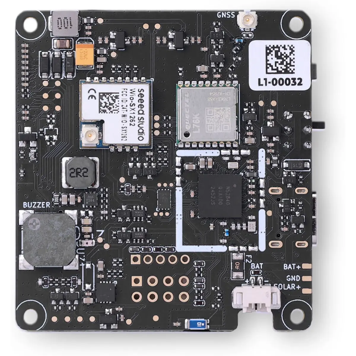 O Wio Tracker L1 é um nó Meshtastic com conectividade LoRa (862–930 MHz), processador nRF52840 e módulo GPS L76K.