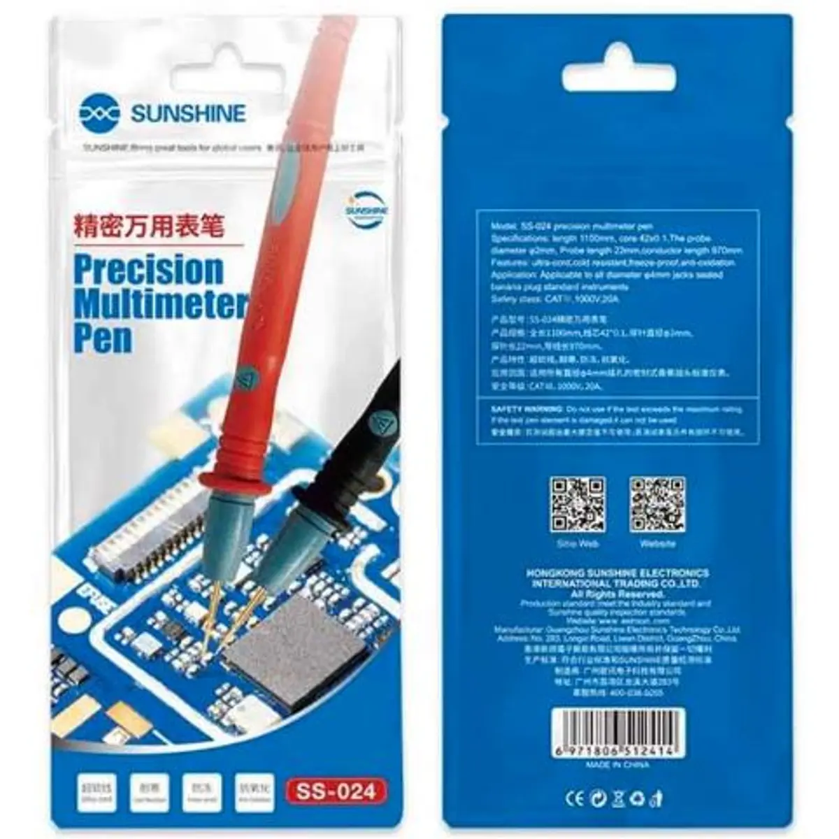 SUNSHINE SS-024 - Pontas de prova profissionais de precisão CAT III 1000V 20A