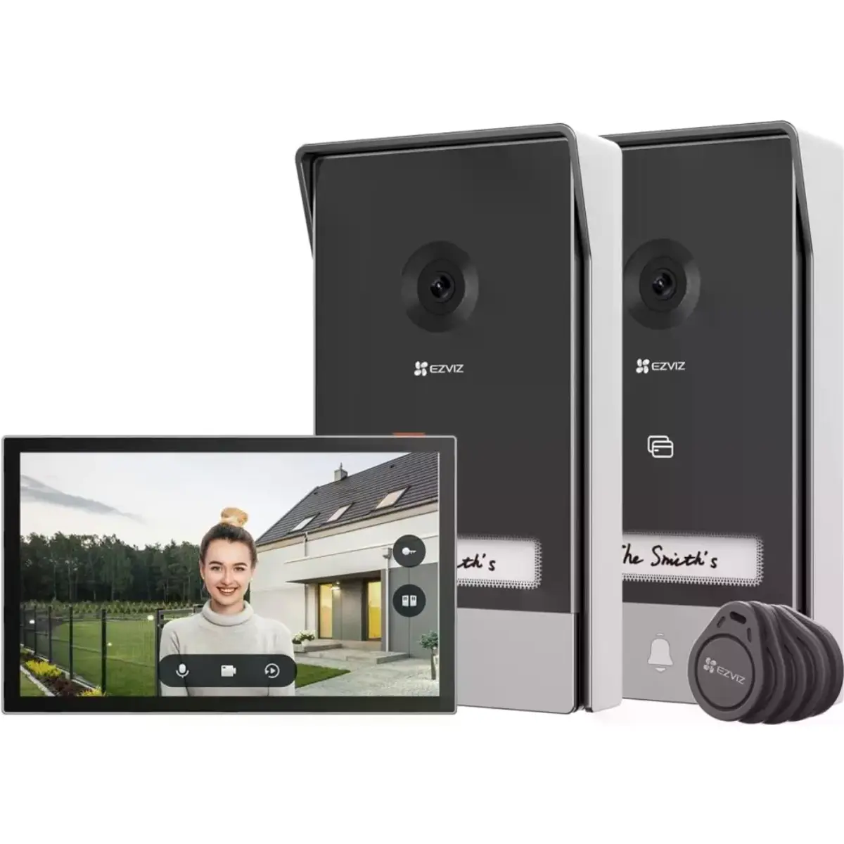 Ezviz HP7 2-entry kit - Kit Video-porteiro inteligente WiFi / 2 Fios c/ 2 unidades ext. 2K + monitor 7'' + leitor RFID