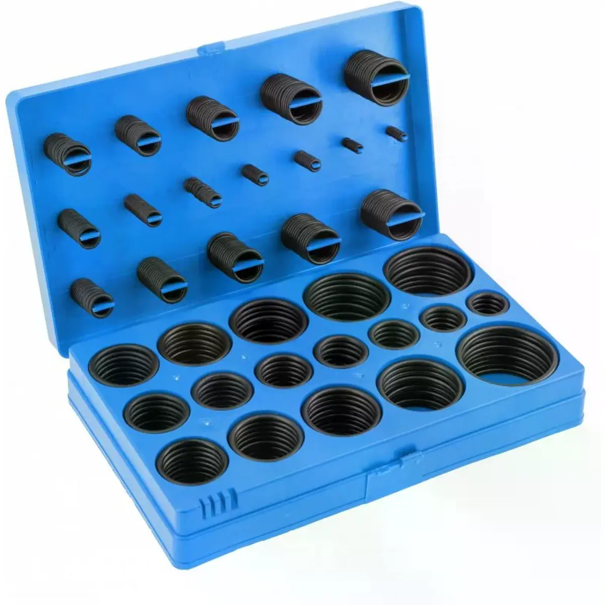 Conjunto de O-rings resistentes a ozono, óleo, óleos minerais, lubrificantes, óleos vegetais e animais, gasóleo, gasolina, gás propano-butano, ácidos diluídos, bases e sais, gases ácidos. Vedação eficiente, prática e precisa com baixo desgaste e baixa permeabilidade a gases.