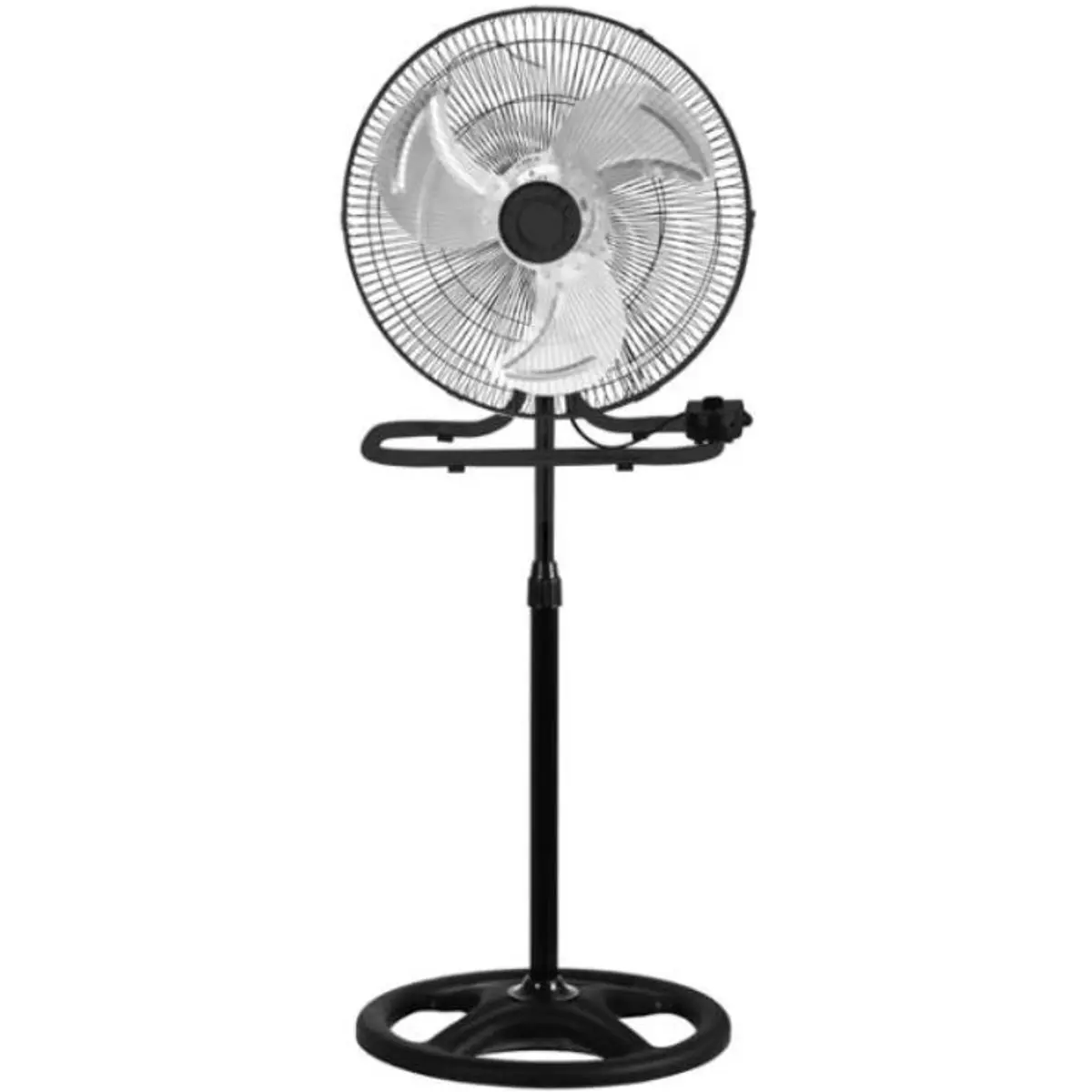 Ventoinha multifuncional de elevado desempenho, silenciosa e eficaz, equipada com hélice de 18” e estrutura metálica aberta para máxima circulação de ar. Pode ser utilizada como ventoinha de pé, de mesa ou montada na parede, conforme a necessidade. Ideal para uso doméstico, escritórios, espaços comerciais ou industriais.