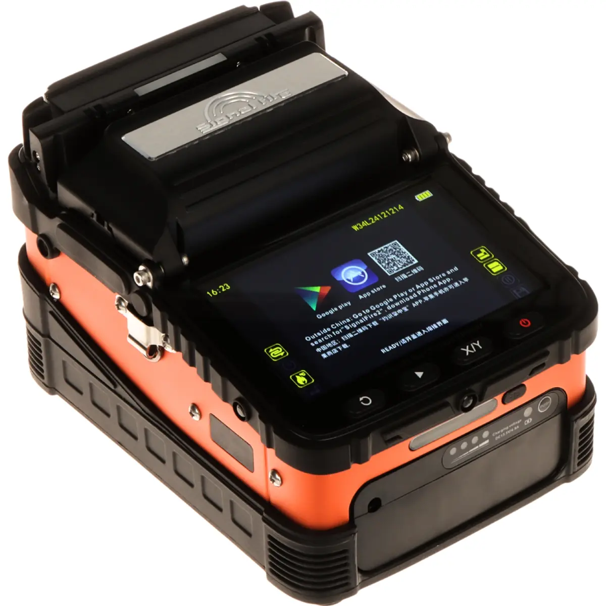 Máquina de fusão de fibras ópticas com alinhamento por núcleo e por revestimento, acionada por quatro motores para maior estabilidade, suporta fibra monomodo (G.652/G.657) e multimodo (G.651). Oferece soldadura rápida em 8 segundos e recozimento de proteção em 15 segundos, com display TFT de 5 polegadas e conectividade Bluetooth 4.2. Ideal para laboratórios e campo, com desempenho estável em condições de -15 °C a +50 °C, resistência a água e poeira, e operação via app Signalfire2.