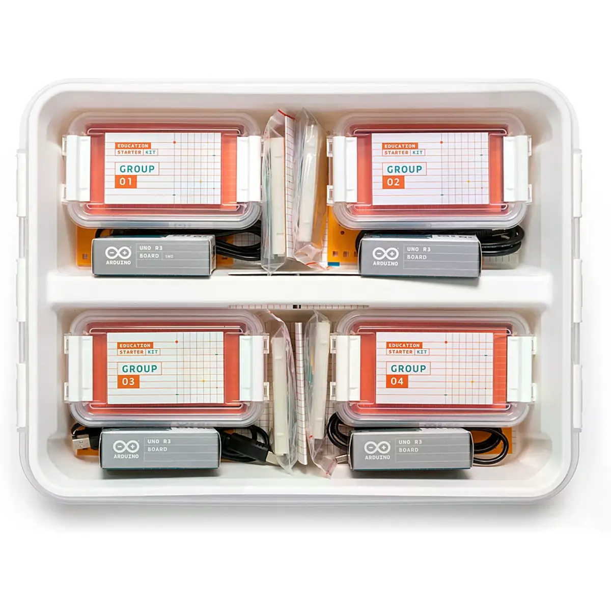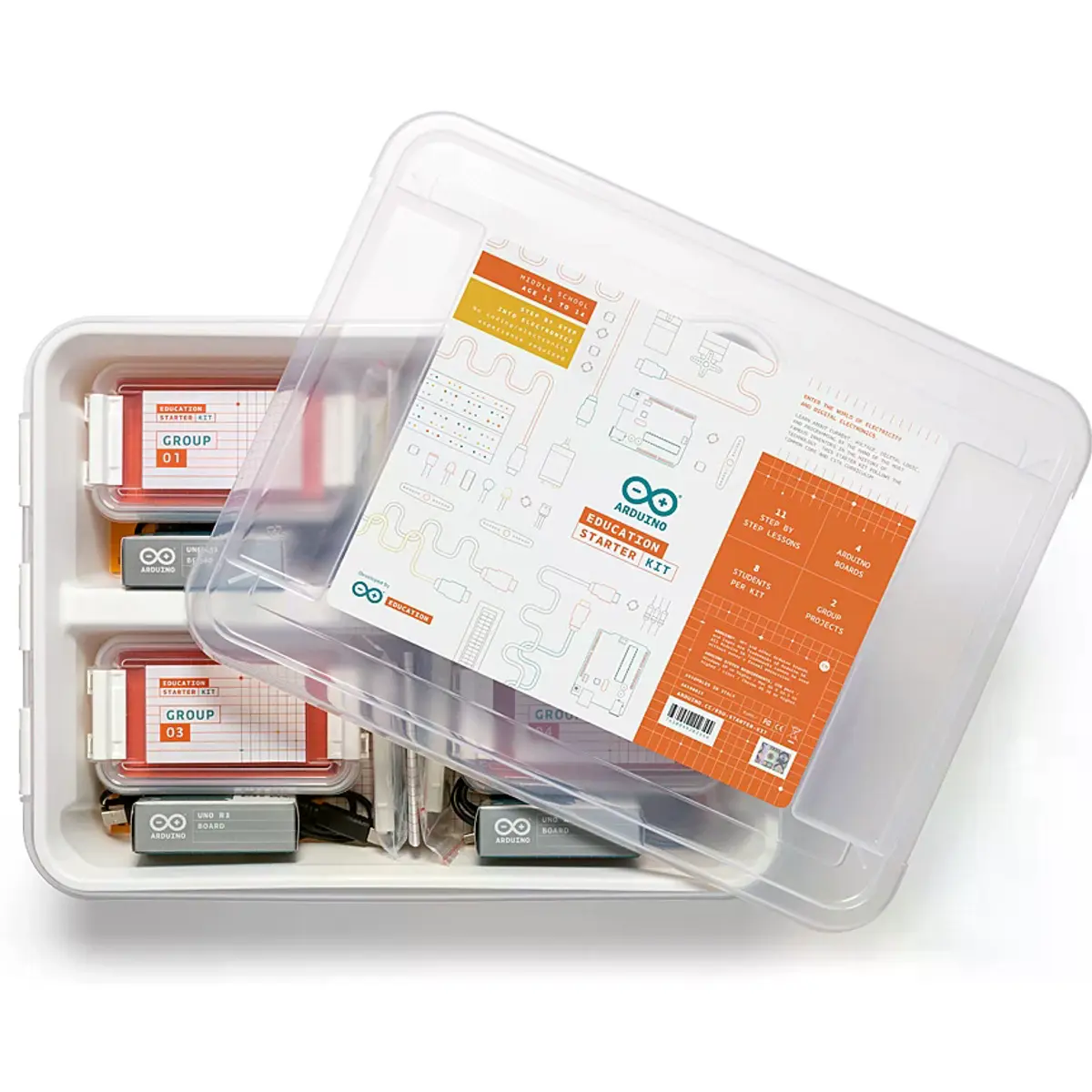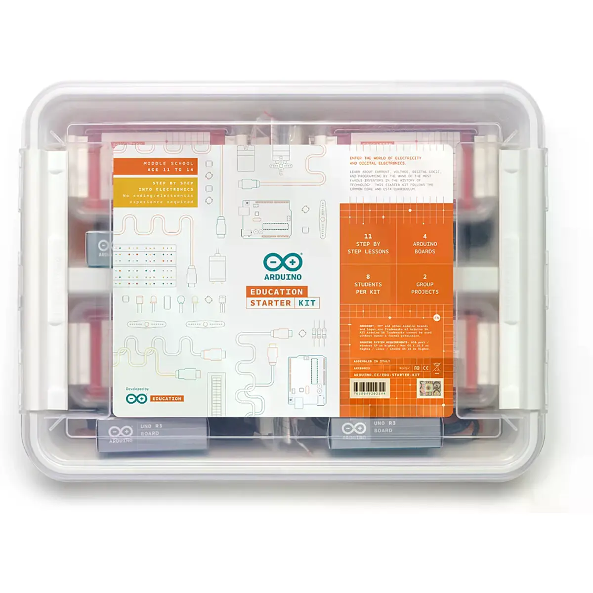 Kit educativo da Arduino destinado a estudantes do ensino básico, projetado para ensinar os fundamentos da programação, codificação e eletrónica. Não requer experiência prévia, guiando os alunos passo a passo com material de apoio para professores. Permite desenvolver competências do século XXI, como colaboração e resolução de problemas, através de aulas estruturadas e projetos experimentais.