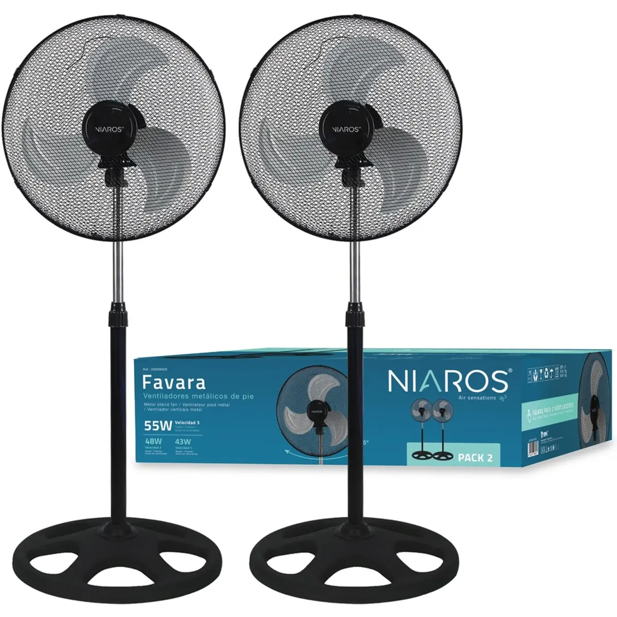 Niaros Favara - Conjunto 2 ventoinhas de pé Ø50cm 55W 3 vel. preto