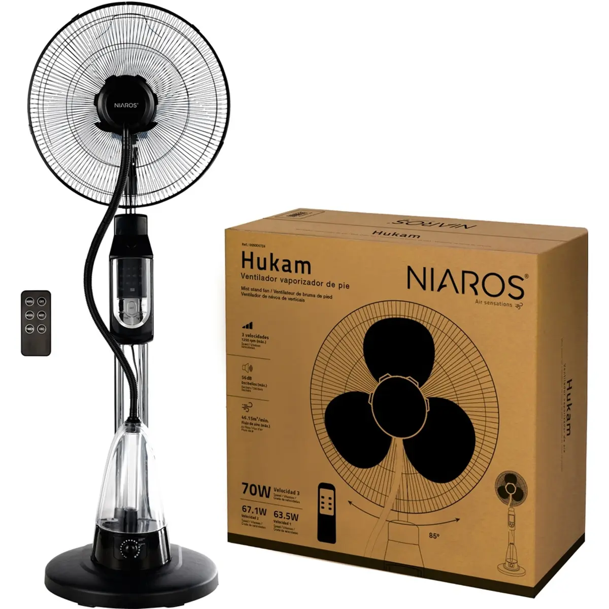 Niaros Hukam - Ventoinha de pé com nebulizador e temporizador Ø40cm 70W