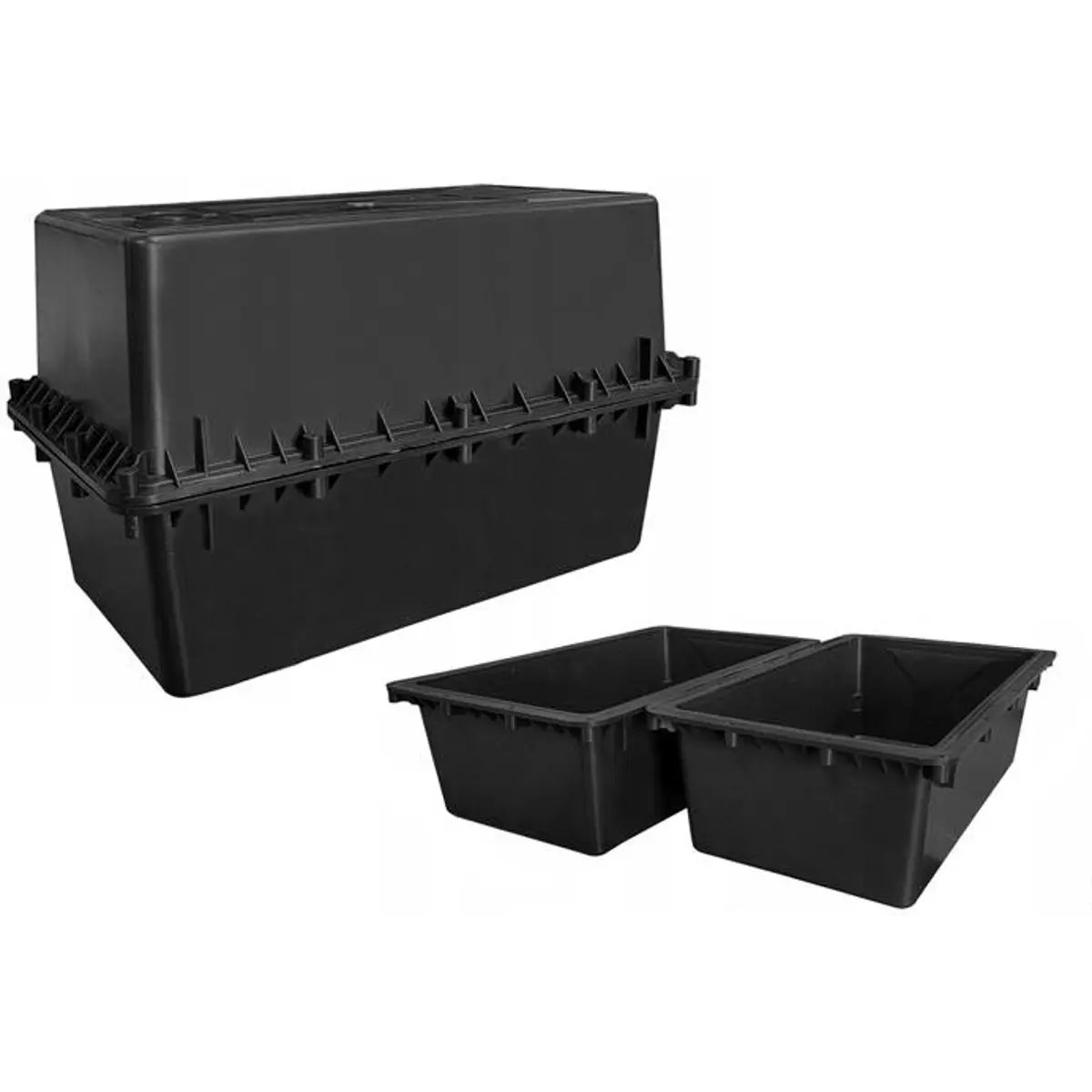 Caixa para baterias, projetada para proteger acumuladores em ambientes isolados, subterrâneos ou em locais com elevada humidade. Fabricada em polipropileno resistente a ácidos, garante isolamento hidro e dispersão eficiente do calor, proporcionando segurança e durabilidade aos acumuladores instalados.