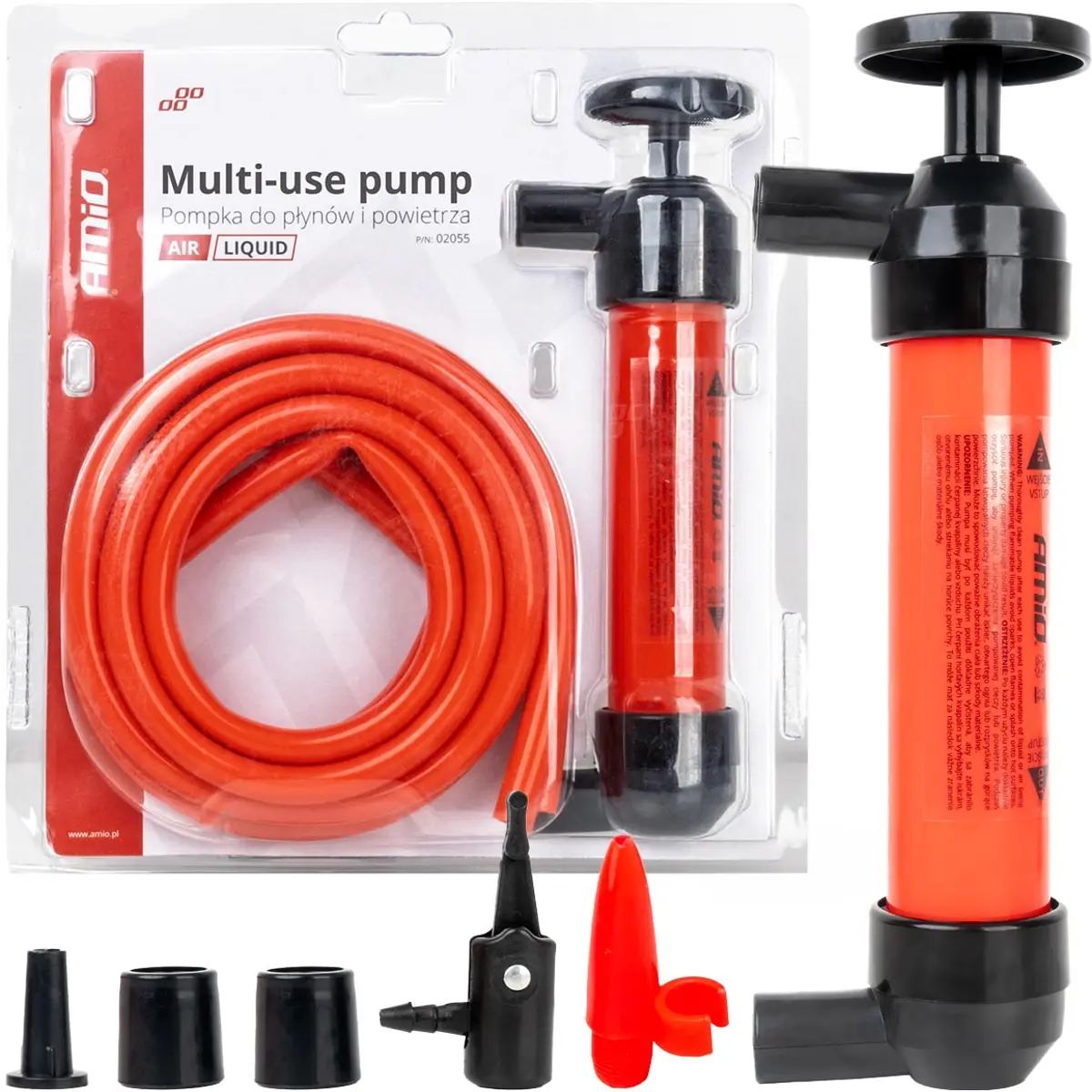 Bomba multifuncional 3-em-1 para drenar combustível, óleo, água e outros líquidos. Ideal para automóveis, tractores, barcos ou qualquer situação onde seja necessário transferir rapidamente líquidos de um depósito para outro. Permite também esvaziar rapidamente brinquedos insufláveis, colchões ou piscinas.