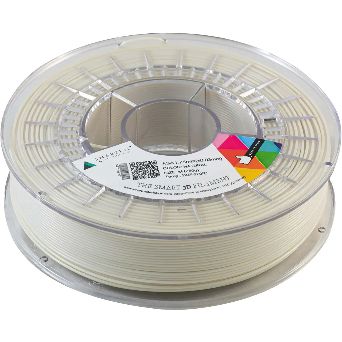 SMARTFIL - Rolo de filamento de impressão 3D em ASA de 1.75mm - Natural - 1000g