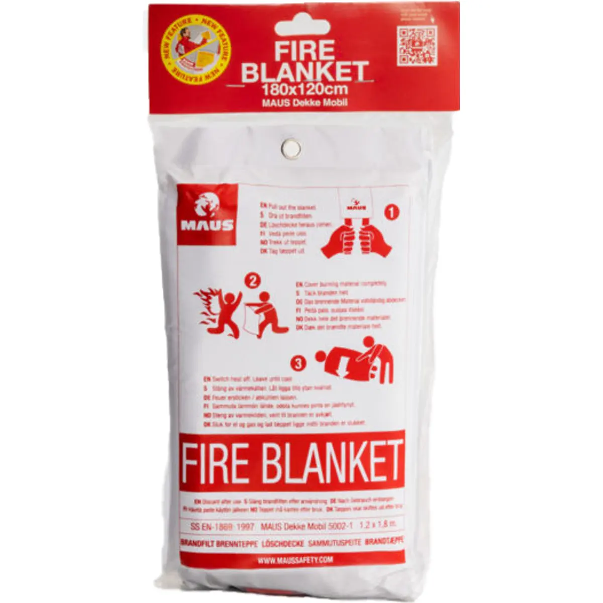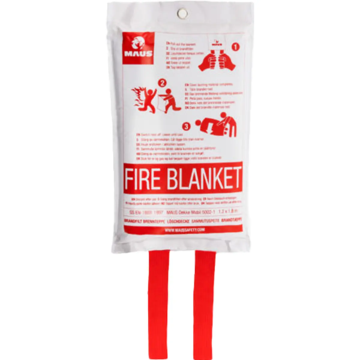 O MAUS Tire Mobile é uma manta anti-incêndio de qualidade que cumpre os requisitos legais definidos para este tipo de produto e ajuda a extinguir incêndios de forma segura. Graças à protecção integrada para as mãos nos cantos da manta (bolsos amarelos na imagem), reduz-se o risco de queimaduras durante a utilização. Fabricada em fibra de vidro, apresenta dimensões de 1,2 m x 1,8 m. É ideal para utilização em ambientes interiores, escritórios, barcos ou autocaravanas. A cobertura exterior em material flexível permite guardá-la facilmente no porta-luvas ou em espaços reduzidos. Está equipada com um aro metálico que possibilita a sua fixação à parede com pregos ou parafusos.