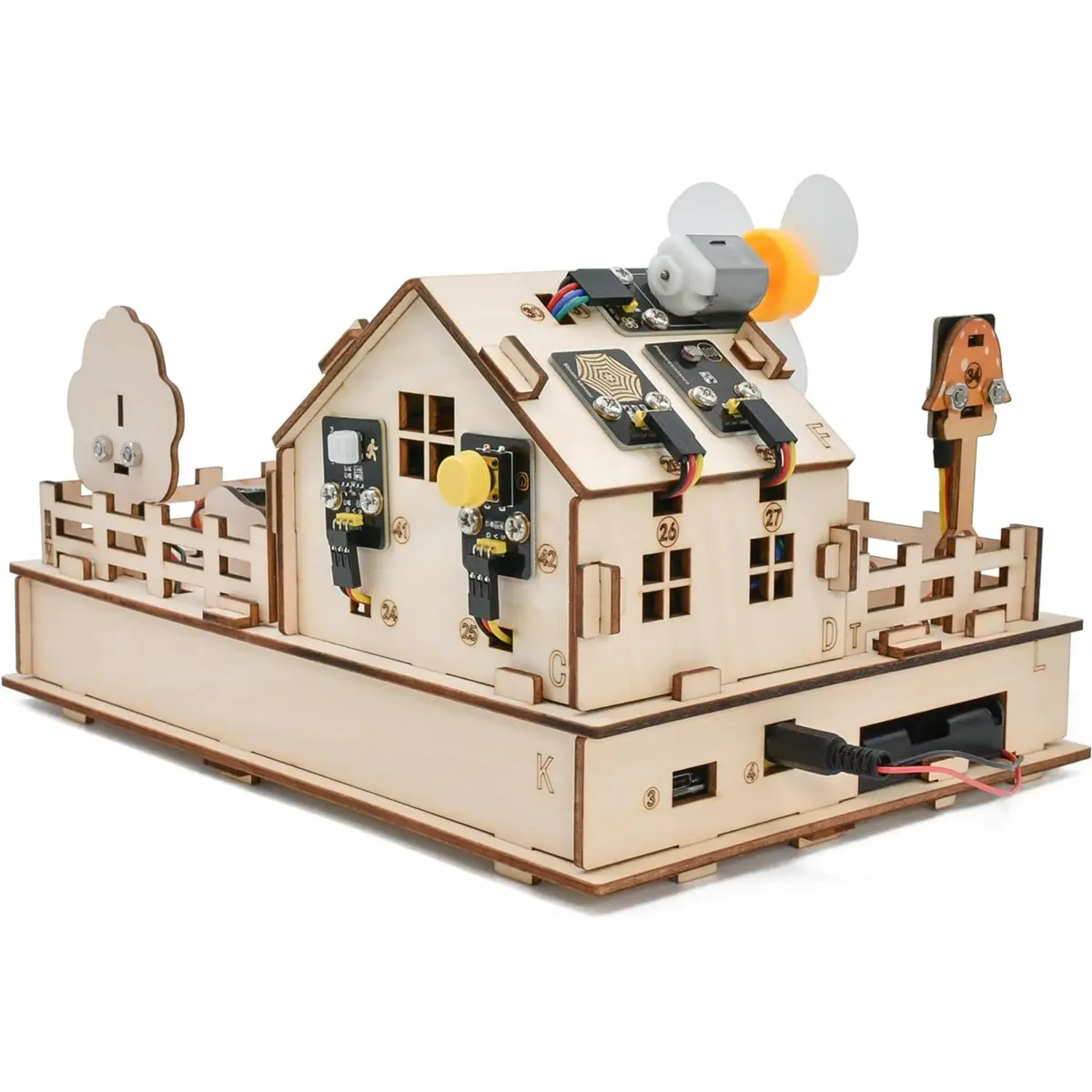 A Quinta Inteligente IoT Keyestudio KS0567 é um kit educativo avançado baseado em ESP32, concebido para ensinar conceitos de agricultura inteligente, Internet das Coisas e monitorização ambiental. Reúne uma vasta gama de sensores e módulos, permitindo criar sistemas autónomos de controlo de luz, rega, temperatura, nível de água e muito mais.