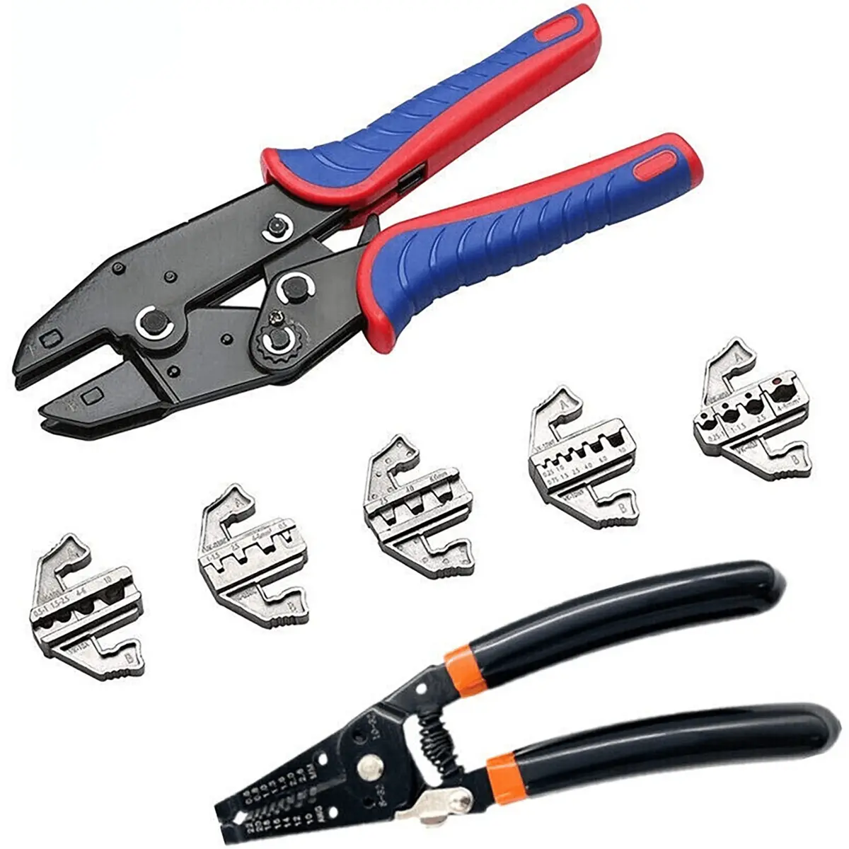 Alicate de cravar com 5 matrizes substituíveis + alicate descarnador