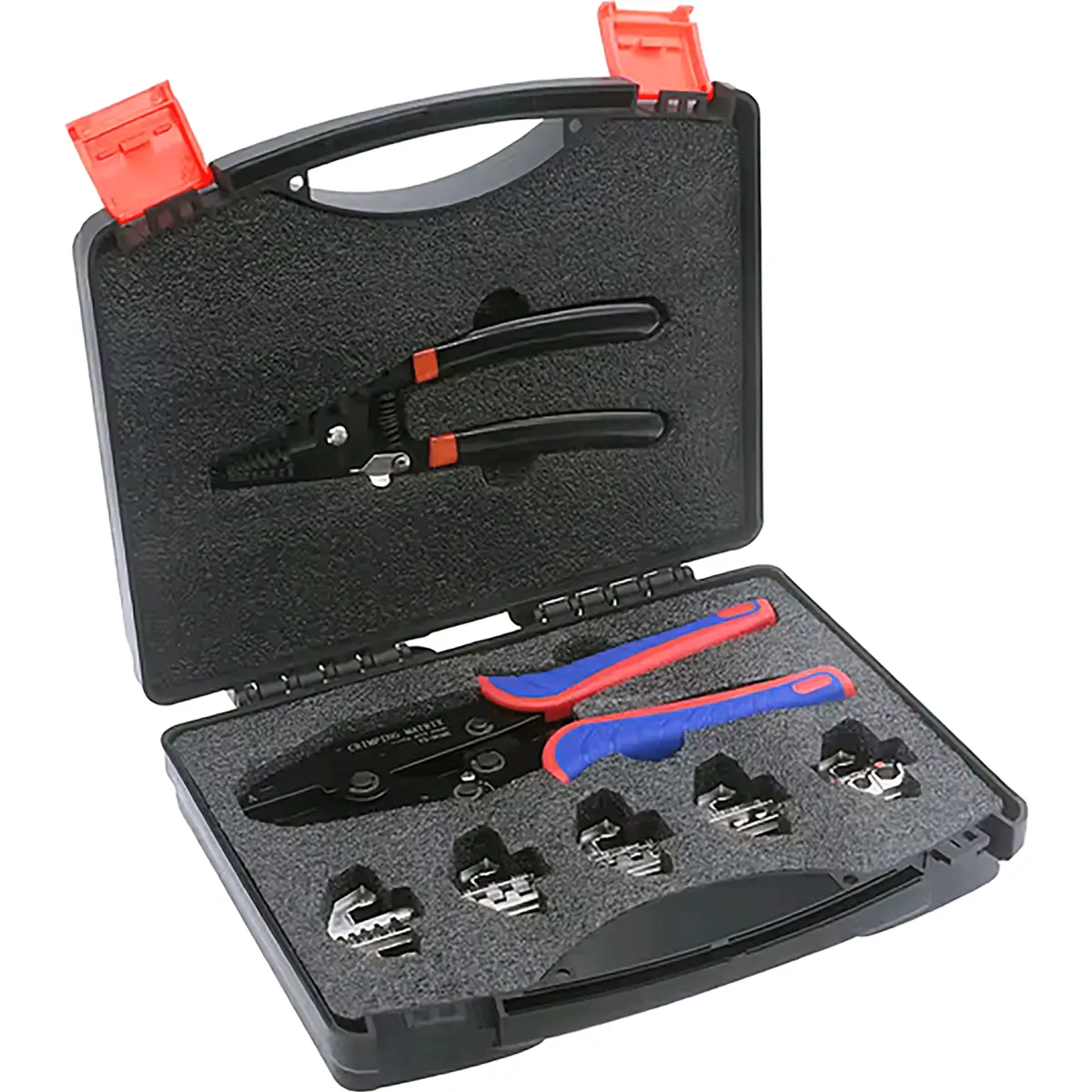 - Inclui alicate de cravar, 5 matrizes, chave de parafusos e descarnador de cabos
