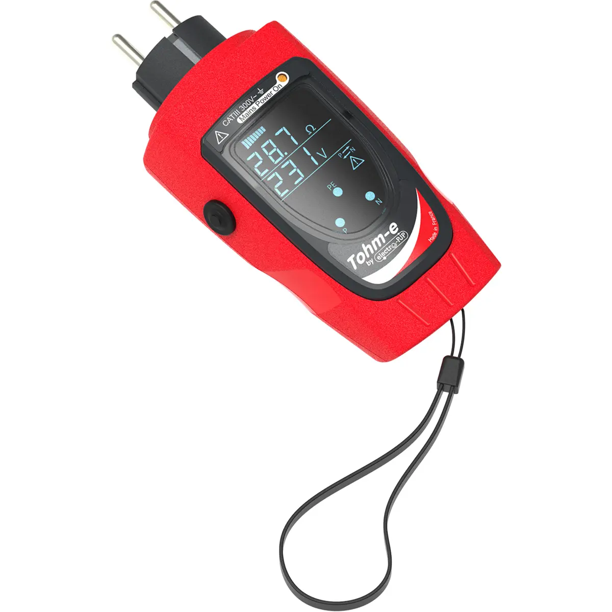 O T2-BE30 (Tohm-e) é um medidor de resistência de terra e verificador de tomadas elétricas concebido para uma utilização rápida, segura e sem necessidade de ligações adicionais. Basta inserir diretamente numa tomada monofásica para obter medições fiáveis da resistência de terra, tensão e estado da instalação elétrica.