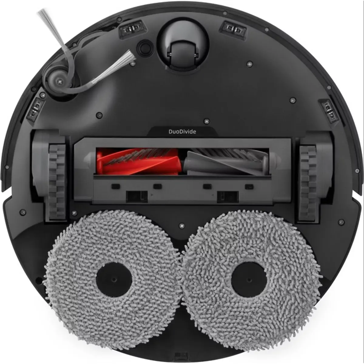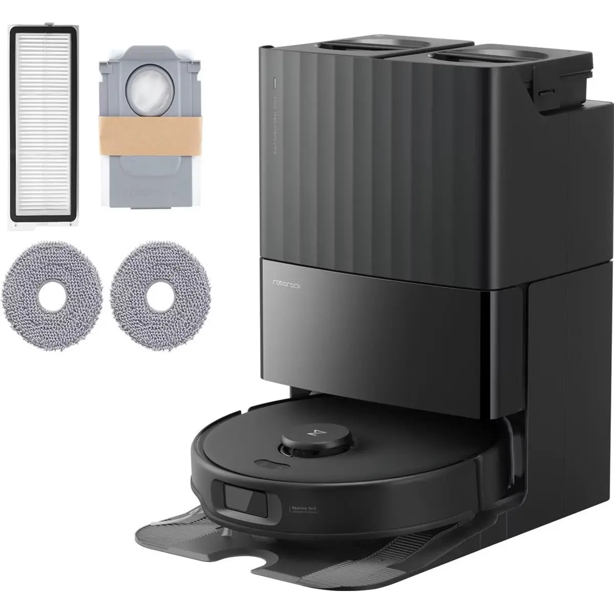 A estação base não só carrega o robô, como também lava e seca os esfregões, utilizando ar quente, e esvazia o depósito de pó. Isto garante higiene, comodidade e reduz a necessidade de manutenção manual.