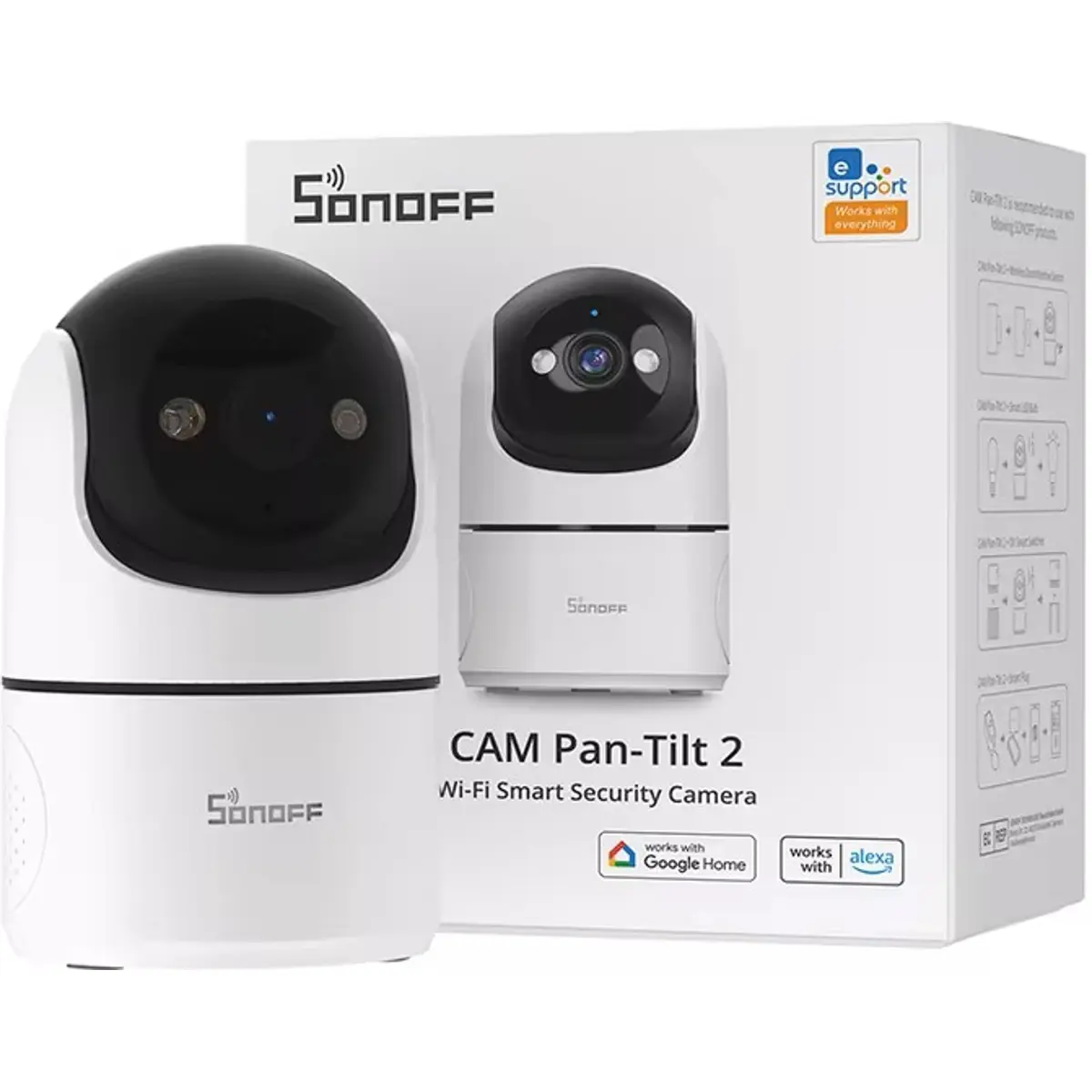 CAM-PT2A SONOFF CAM Pan-Tilt 2 (CAM-PT2) é uma câmara de segurança inteligente, com WiFi, para interior, que combina resolução Full HD 1080P, visão panorâmica de 360° e deteção avançada de movimento com IA. Equipada com áudio bidirecional, visão noturna e modo de privacidade físico, garante monitorização fiável, segura e adaptada às tuas necessidades, seja em casa ou no escritório.