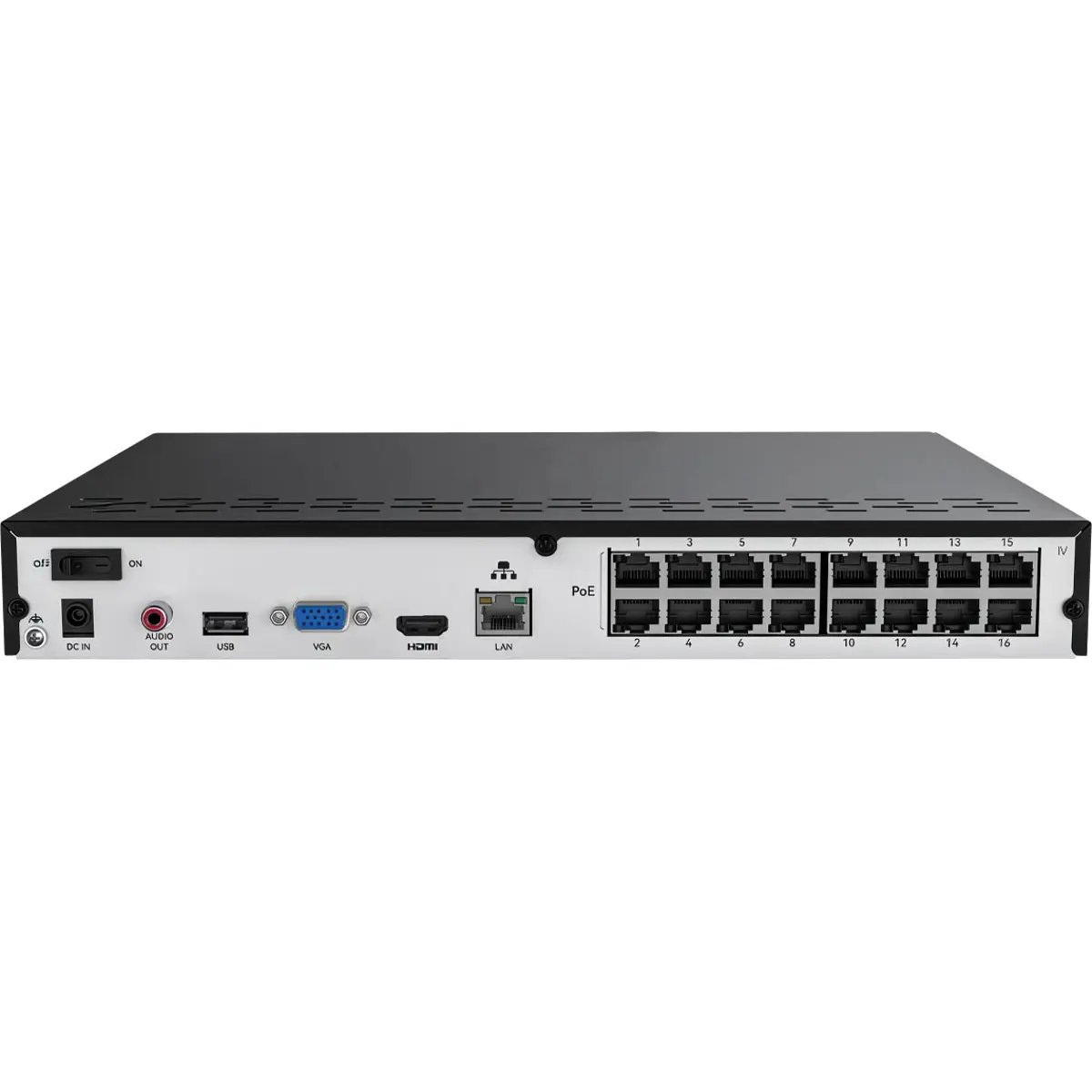 - Rede: 16 × RJ-45 PoE 10/100 Mbps + 1 × RJ-45 LAN/WAN 10/100/1000 Mbps