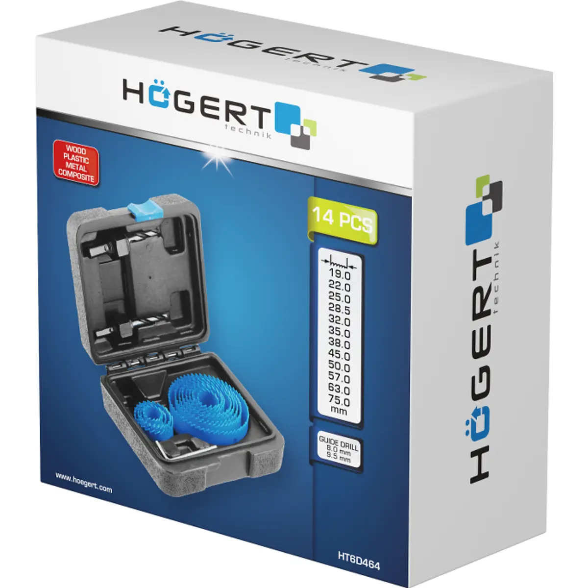 - Inclui 2 brocas piloto de 8 mm e 9,5 mm