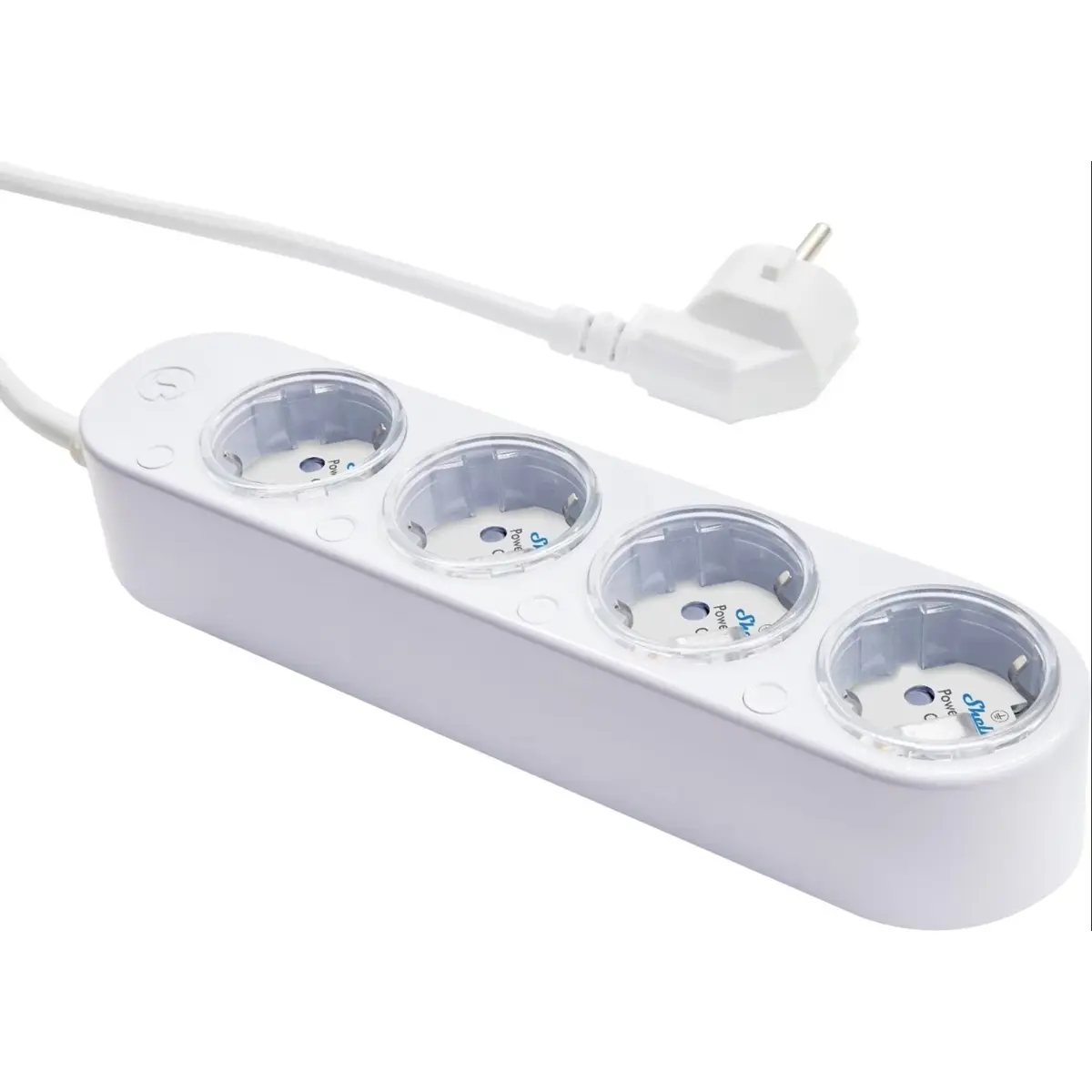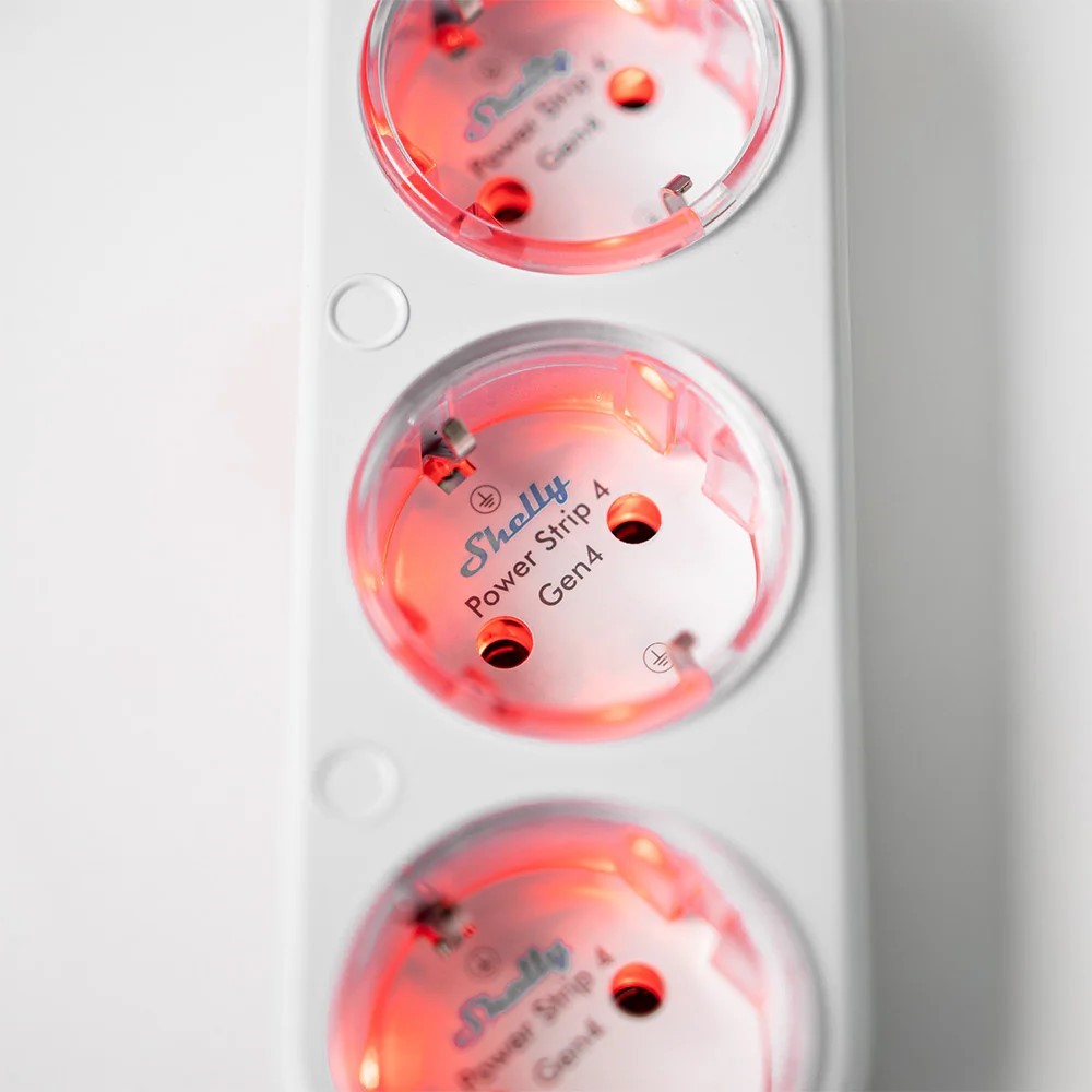 A Shelly Power Strip 4 Gen4 é uma régua de tomadas inteligentes, de última geração, compacta e versátil, que permite controlar e monitorizar individualmente até quatro aparelhos elétricos. Com suporte para Wi-Fi, Bluetooth, Zigbee e Matter, oferece integração completa com os principais ecossistemas de automação doméstica, como Apple HomeKit, Alexa, Google Home e SmartThings. Ideal para secretárias, mesas de trabalho ou mesas de cabeceira, combina controlo inteligente, medição de energia e indicadores LED multicoloridos num design elegante e funcional.