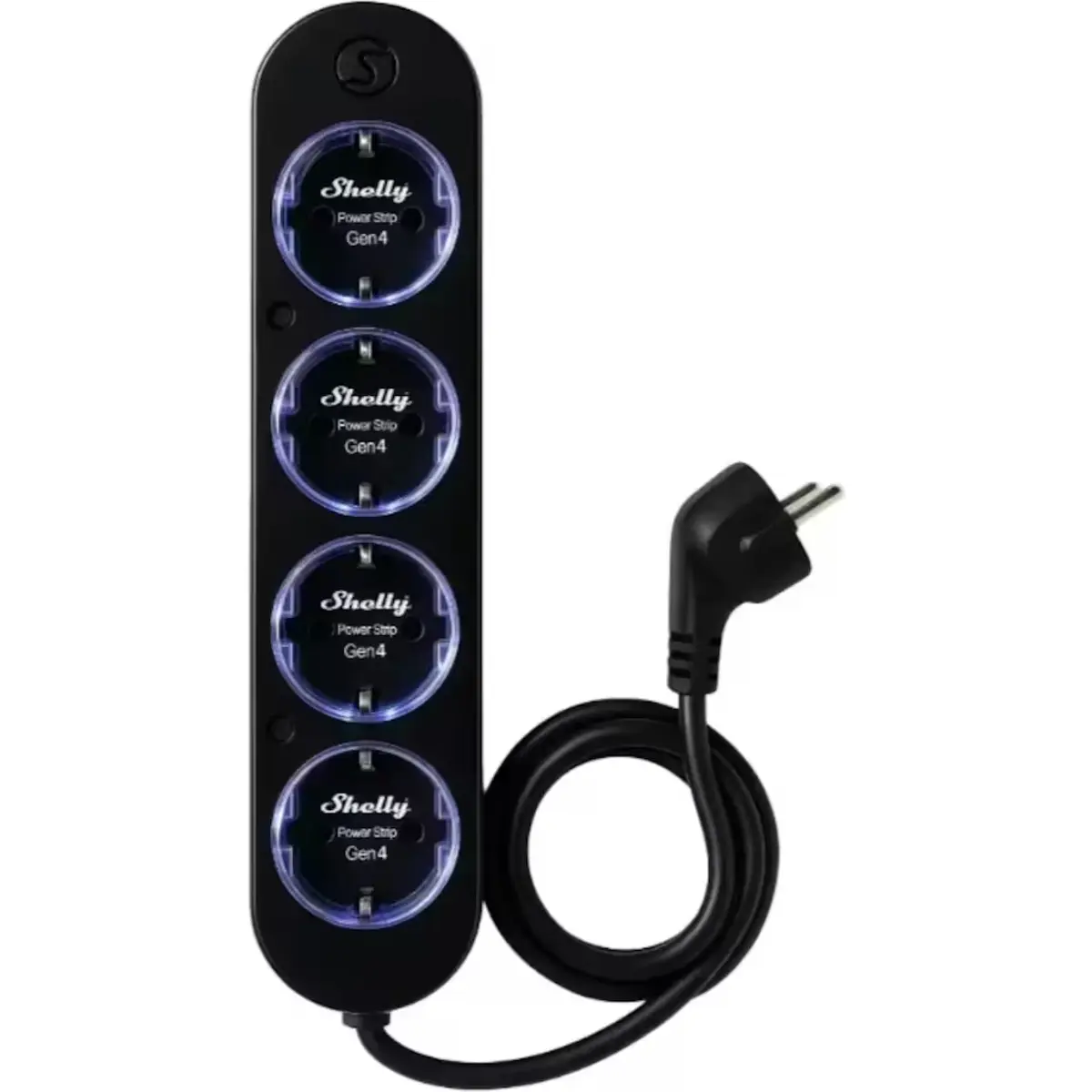 A Shelly Power Strip 4 Gen4 é uma régua de tomadas inteligentes, de última geração, compacta e versátil, que permite controlar e monitorizar individualmente até quatro aparelhos elétricos. Com suporte para Wi-Fi, Bluetooth, Zigbee e Matter, oferece integração completa com os principais ecossistemas de automação doméstica, como Apple HomeKit, Alexa, Google Home e SmartThings. Ideal para secretárias, mesas de trabalho ou mesas de cabeceira, combina controlo inteligente, medição de energia e indicadores LED multicoloridos num design elegante e funcional.