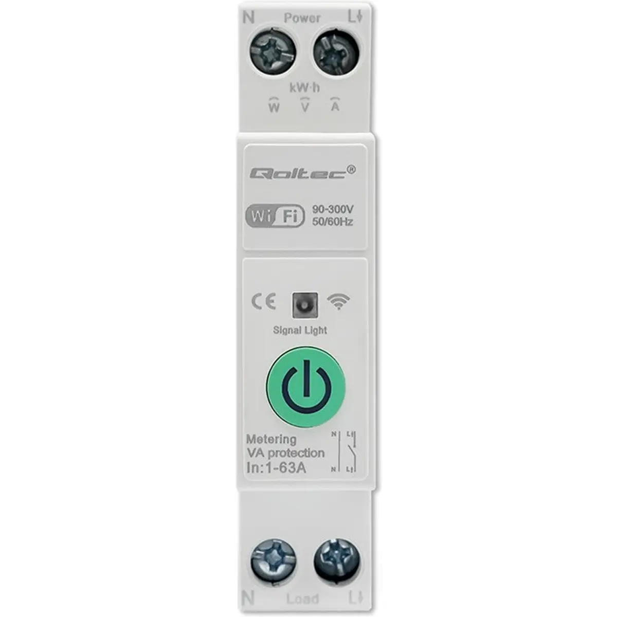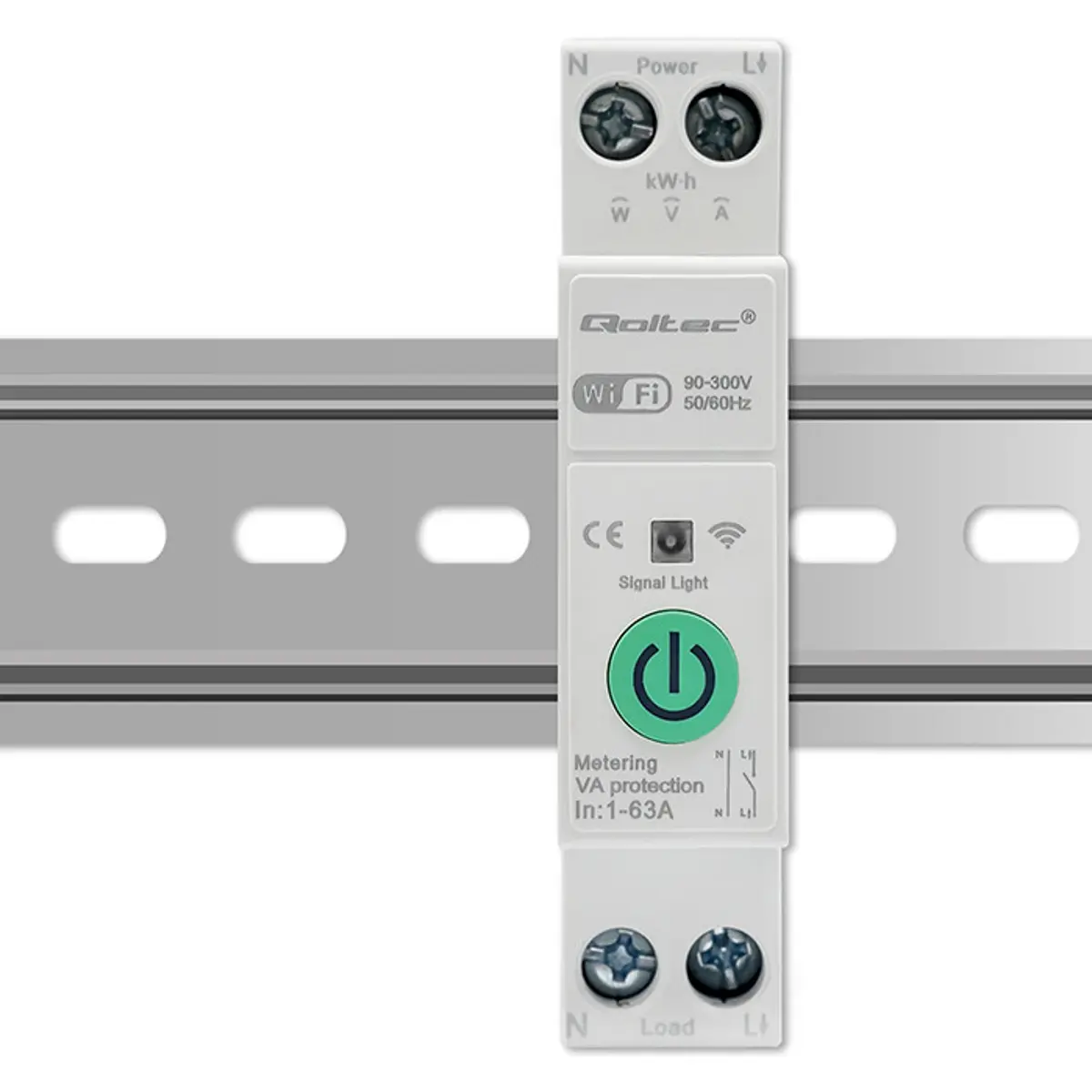 Qoltec 50881 - Relé Inteligente Wi-Fi p/ calha DIN c/ medição de energia 63A (Compatível com Tuya)