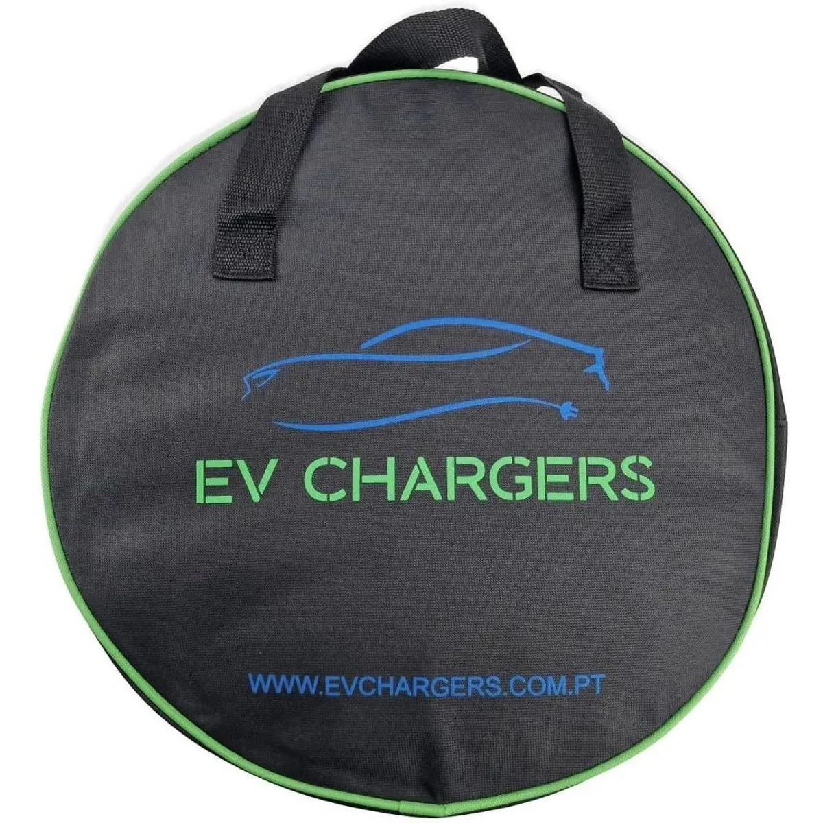 Carregador portátil para veículos elétricos com ficha Tipo 2, regulável até 32 A, 7,4 kW e funcionamento entre 110-220 V. Ideal para espaços comerciais ou parques de campismo; inclui adaptador Schuko, cabo de 5 m e proteção IP54. O display informa temperatura, estado da ligação, auto-teste, tensão de rede, tempo de carregamento e energia total (kWh). Possui temporizador (2/4/6 h) e proteções 30 mA AC e 6 mA DC (tipo B). Garantia de 3 anos; compatível com veículos elétricos com ficha Tipo 2. Nota: se usar adaptador Schuko em tomada doméstica, limita a 16 A.