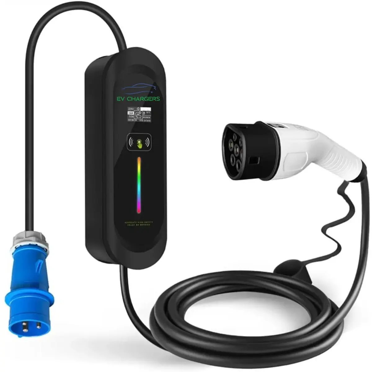 Carregador portátil para EV c/ display - monofásico 6-32A 7.4kW - CEE 16A (c/ adaptador Schuko)  - Tipo 2 - IP54 - 5m Carregador portátil para EV c/ display - monofásico 6-32A 7.4kW - CEE 16A (c/ adaptador Schuko)  - Tipo 2 - IP54 - 5m Carregador portátil para EV c/ display - monofásico 6-32A 7.4kW - CEE 16A (c/ adaptador Schuko)  - Tipo 2 - IP54 - 5m