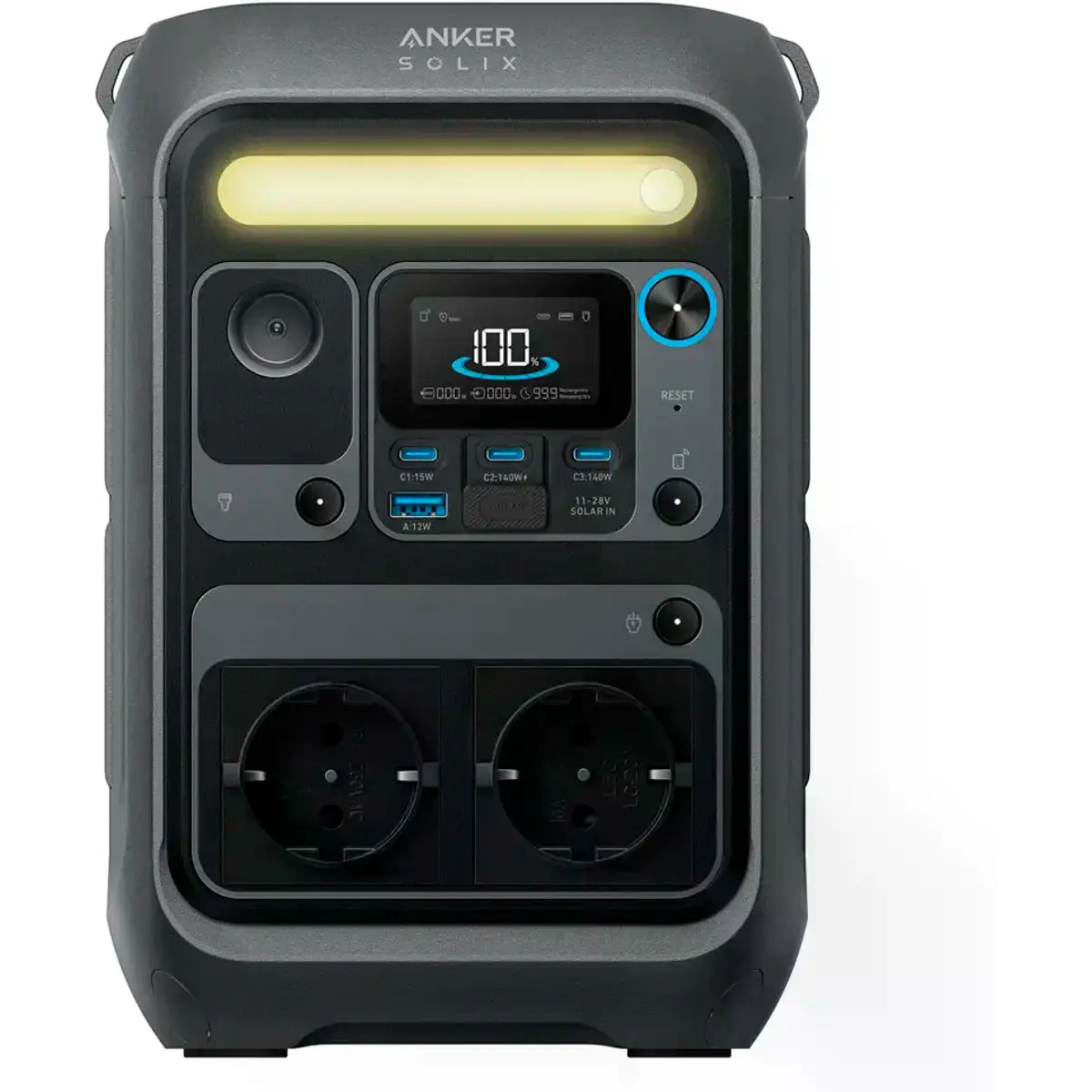 A Anker SOLIX C300X é uma estação de energia portátil compacta e de alto desempenho, projetada para fornecer energia fiável em qualquer ambiente. Com bateria LiFePO₄ de 288 Wh, 7 portas de saída e potência nominal de 300 W (pico de 600 W), é ideal para profissionais, técnicos e aventureiros que necessitam de autonomia energética total, mesmo longe da rede elétrica.