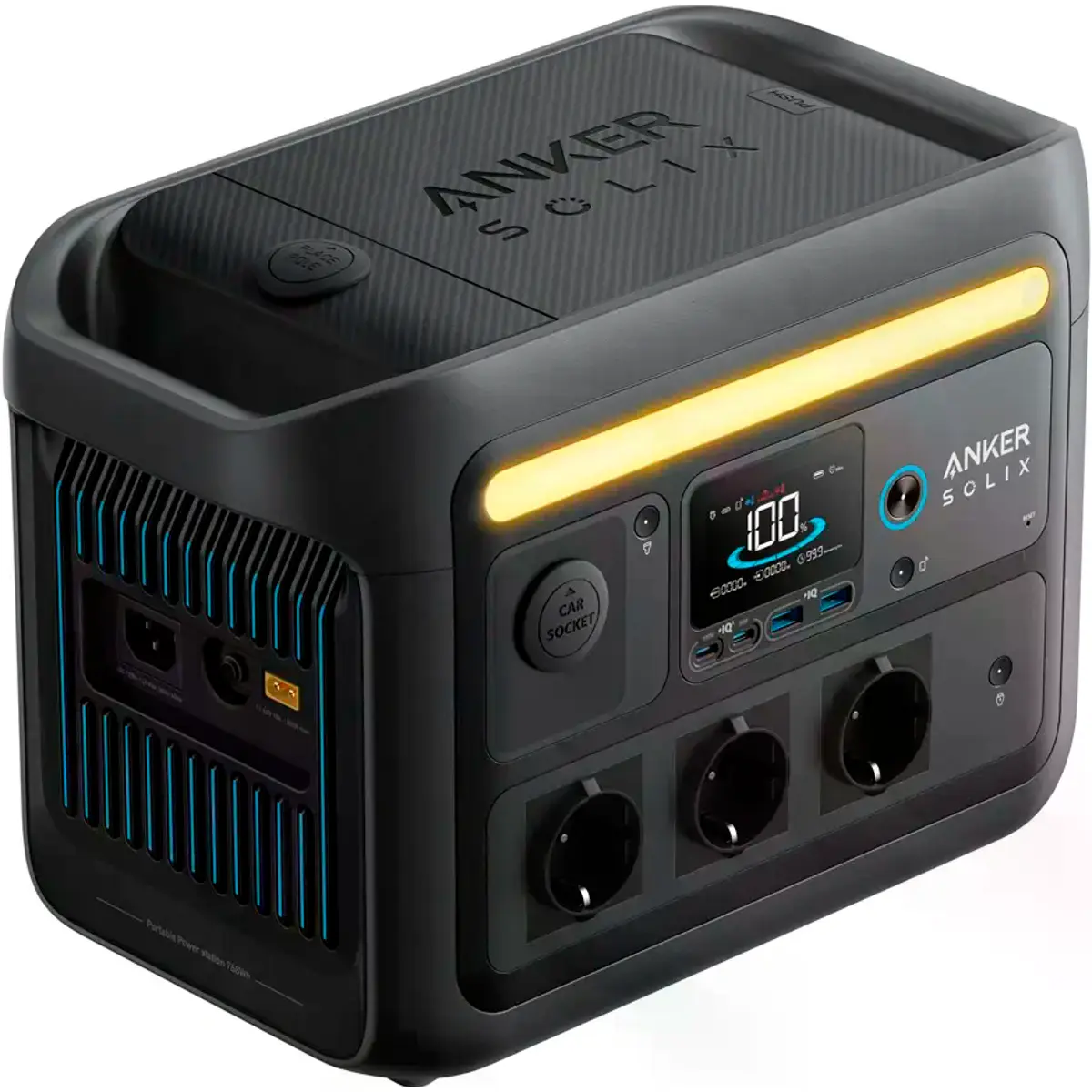 A Anker SOLIX C800X (C800 Plus) é uma estação de energia portátil (Power Station) de elevado desempenho, desenhada para profissionais e utilizadores exigentes que necessitam de energia fiável e duradoura em qualquer ambiente. Com bateria LiFePO₄ de 768 Wh, potência nominal de 1200 W (pico 1600 W) e carregamento ultrarrápido de 0 a 100 % em menos de uma hora, oferece a combinação ideal entre autonomia, segurança e versatilidade.