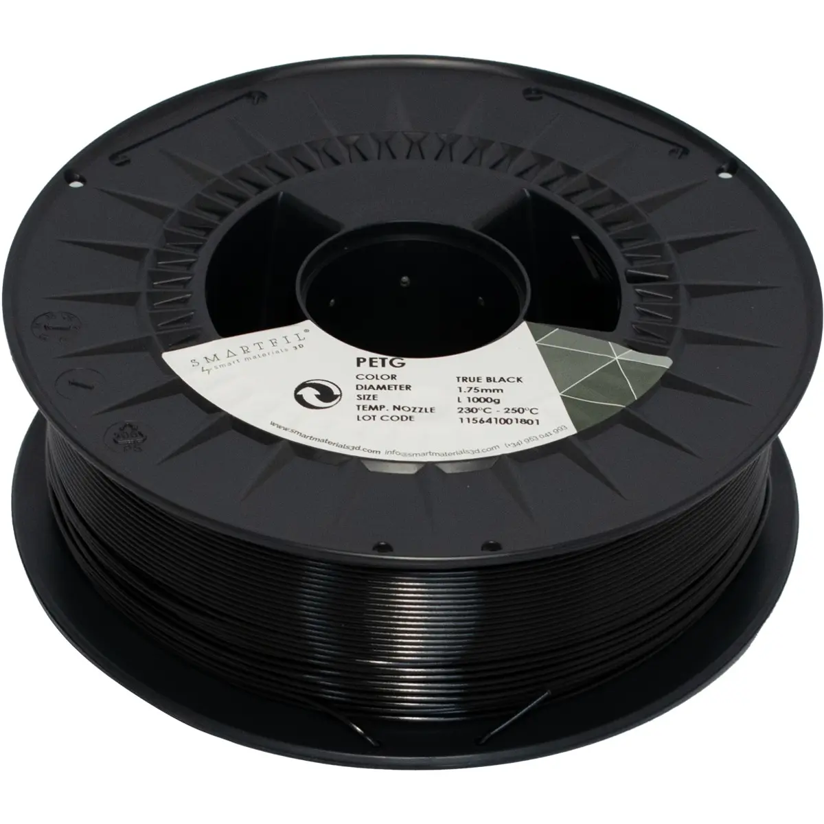 SMARTFIL - Rolo de filamento de impressão 3D em PETG de 1.75mm - Preto - 1000g