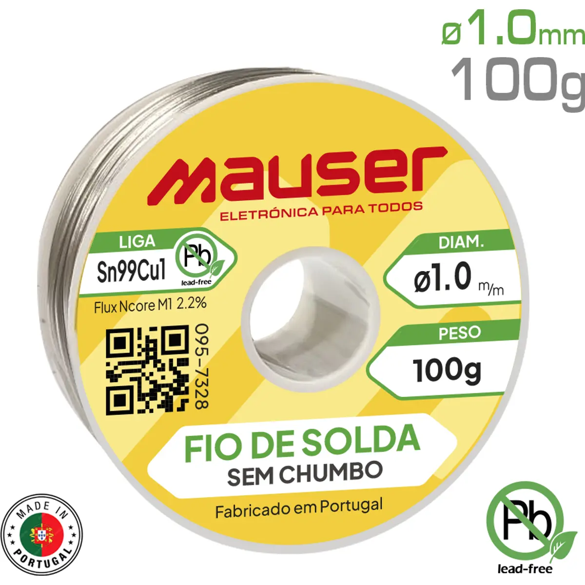 Mauser - Solda em fio s/ chumbo ''Lead Free'' c/ adição de cobre Sn99Cu1 SW32 - 1.0mm - 100g.