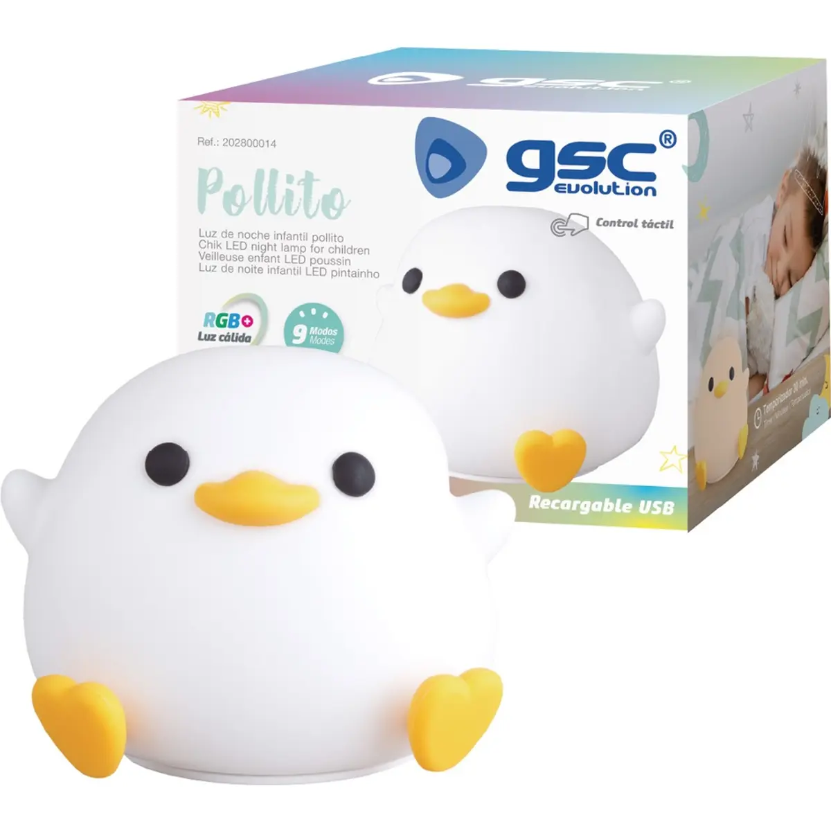GSC Evolution - Luz noturna infantil Tátil LED 1W RGB recarregável - Pintainho