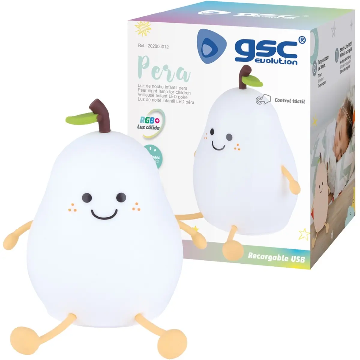 GSC Evolution - Luz noturna infantil Tátil LED 1W RGB recarregável - Pêra