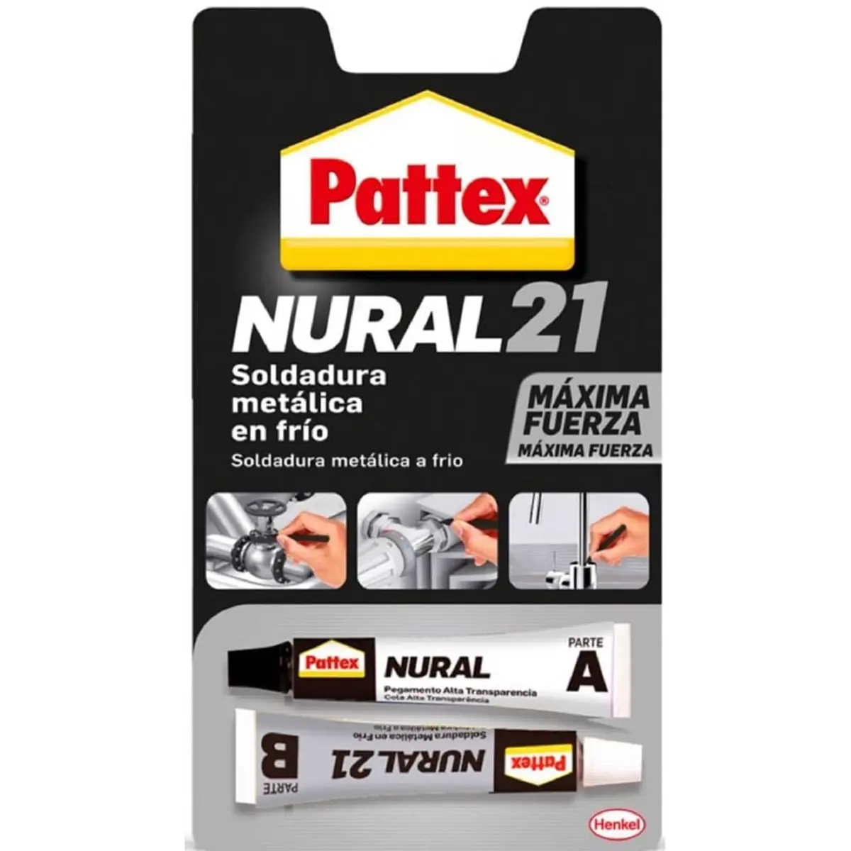 A Pattex Nural 21 é uma soldadura reparadora a frio de grande resistência, formulada especialmente para colar e reparar metais. Possui acabamento cinzento, não contém solventes e não altera o seu volume após endurecer. Cola, repara e preenche de forma permanente, sendo ideal para tapar fendas e fugas em tubagens, depósitos e peças metálicas.