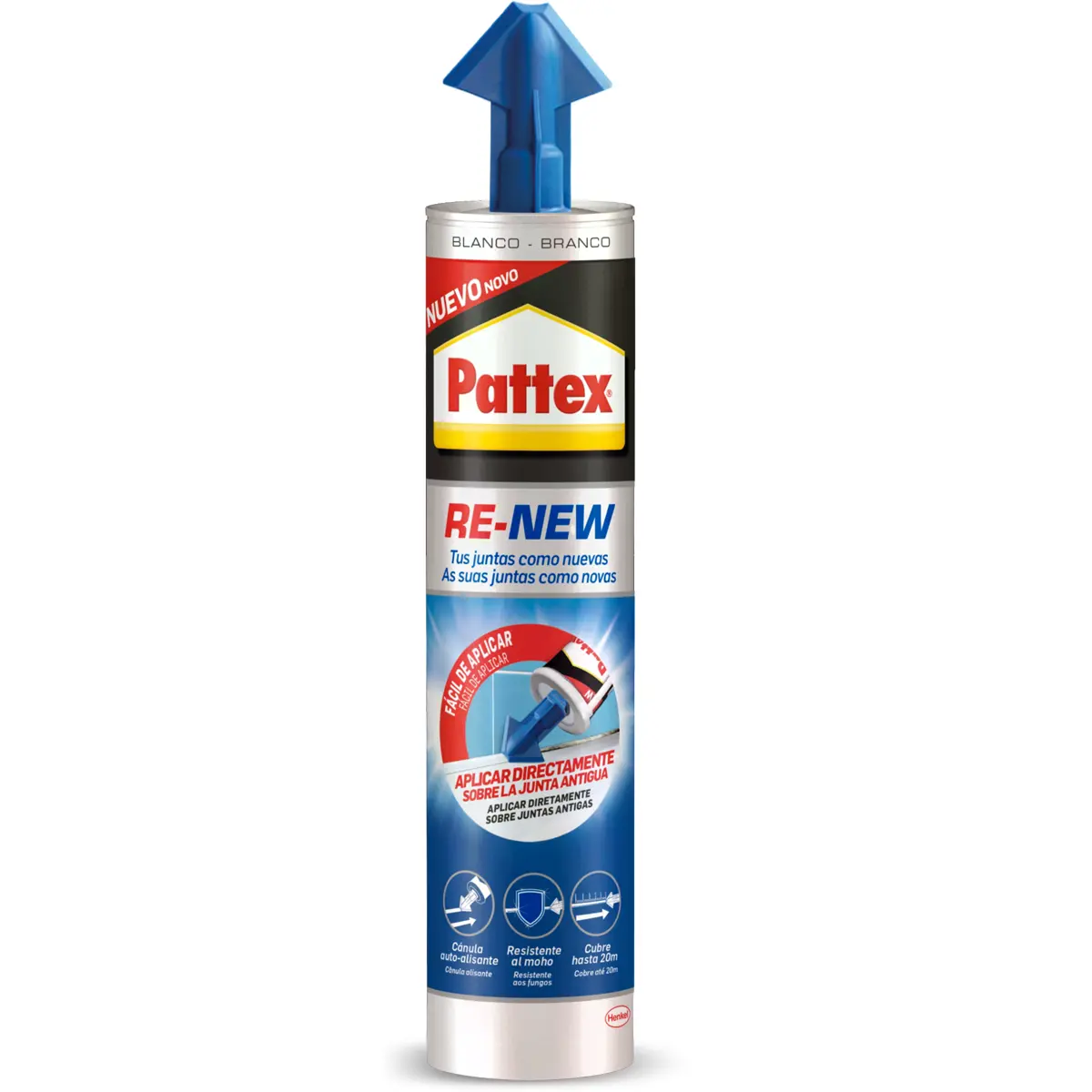 Pattex RENEW é um revestimento de silicone monocomponente à base de água, pronto a usar, especialmente desenvolvido para renovar juntas de silicone em áreas sanitárias. Possui excelente resistência ao bolor e forma um revestimento elástico, duradouro e inodoro, ideal para renovar o aspeto de juntas antigas sem necessidade de remover o silicone existente.