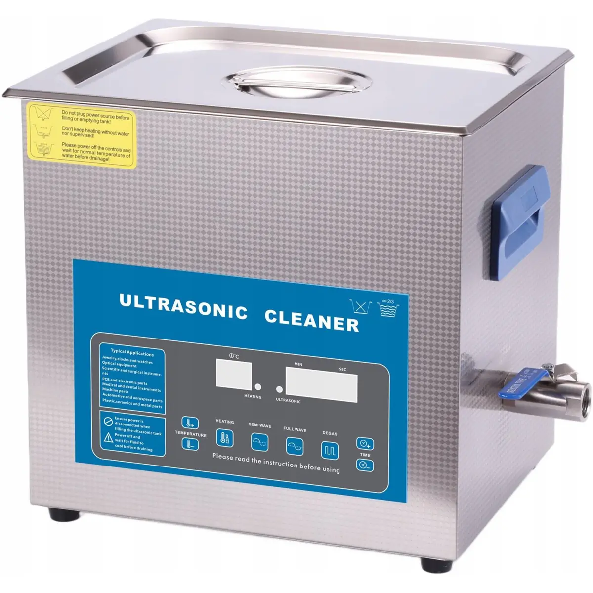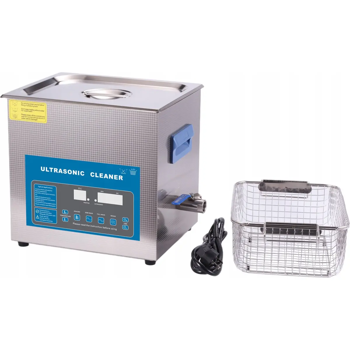 Limpador ultrassónico com visor digital e função DEGAS, desenvolvido para limpeza intensiva a uma frequência de 40 kHz. Recomenda-se uma utilização máxima de 3 a 4 horas por dia. Especialmente indicado para a limpeza de objectos fortemente contaminados, sendo adequado para oficinas, centros de assistência técnica e ambientes profissionais. O controlo é simples, através de botões com visor digital para ajuste do tempo de limpeza e da temperatura de aquecimento.