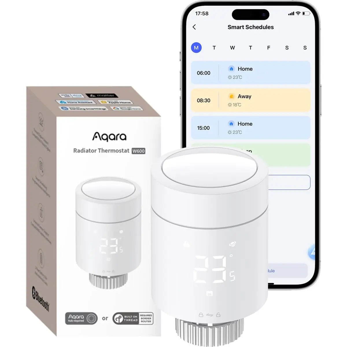 O Aqara W600 é uma cabeça de válvula termostática inteligente, com conectividade Thread e Zigbee (com suporte Matter), concebida para modernizar radiadores de água quente. Substitui o botão tradicional do radiador e oferece funcionalidades inteligentes de controlo de temperatura por divisão, aumentando o conforto e ajudando a reduzir o consumo de energia.