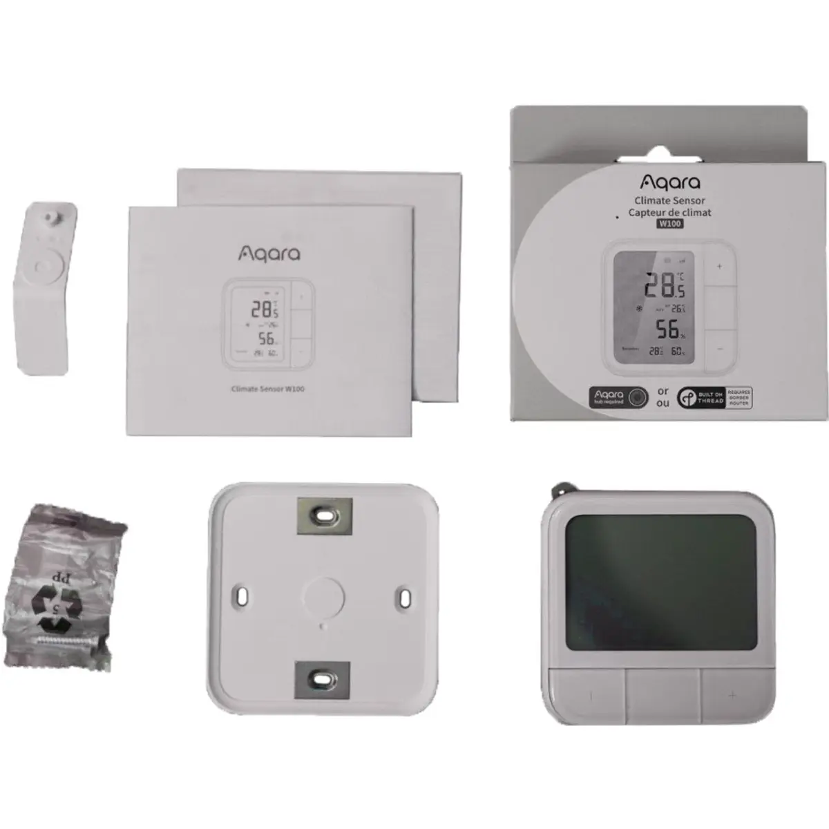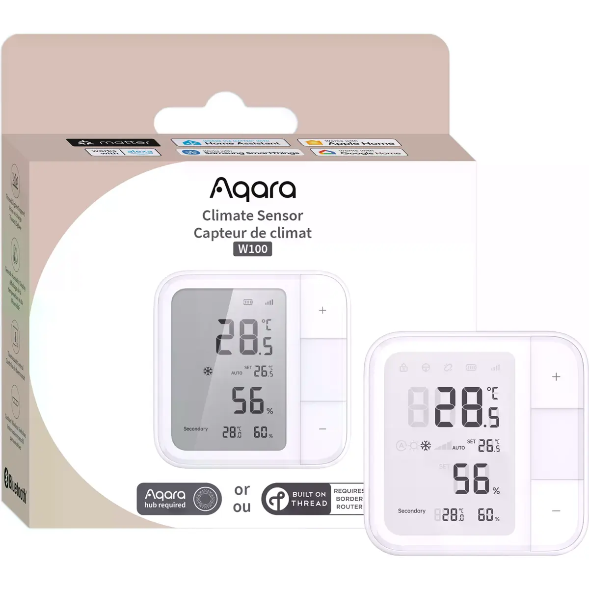 O Aqara Climate Sensor W100 é um sensor inteligente de temperatura e humidade de alta precisão, concebido para monitorização ambiental avançada e controlo eficiente do conforto interior. Equipado com um amplo ecrã LCD e compatível com Zigbee, permite integração total no ecossistema Aqara, oferecendo leitura em tempo real, automações inteligentes e controlo direto de sistemas de climatização.