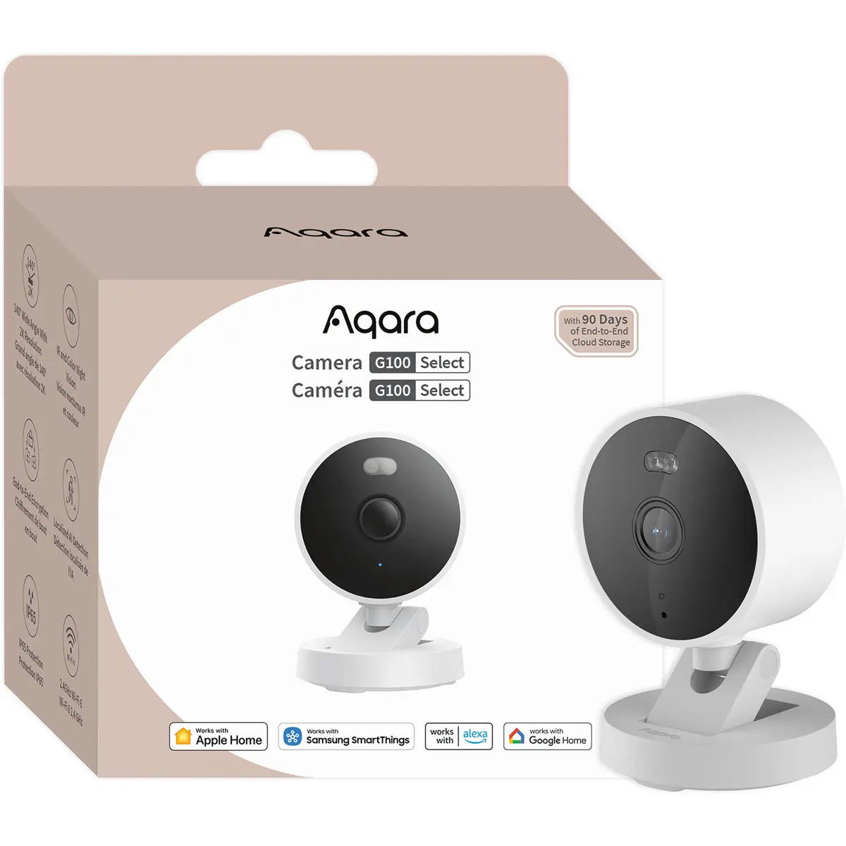 Aqara G100 Select - Câmara de vigilância IP (WiFi) 2K c/ Deteção de pessoas – IP65 – Branca