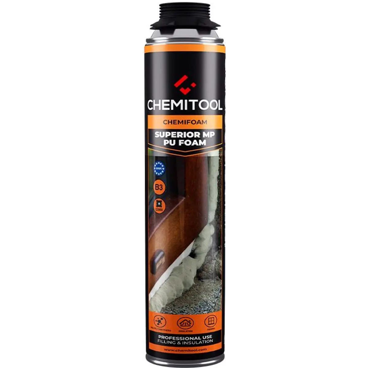 Espuma Poliuretano B3 Combi CHEMIFOAM é uma espuma de poliuretano monocomponente, autoexpansível, que cura em contacto com a água e a humidade do ar. Possui uma dupla válvula que permite a aplicação tanto com cânula manual como com pistola, garantindo maior rendimento.