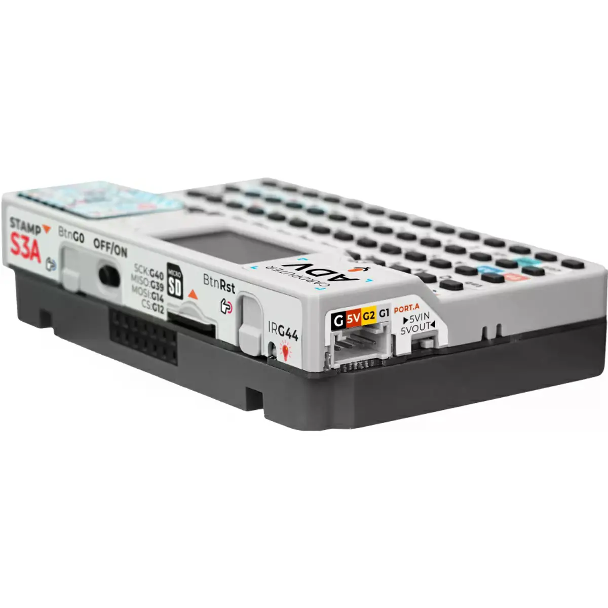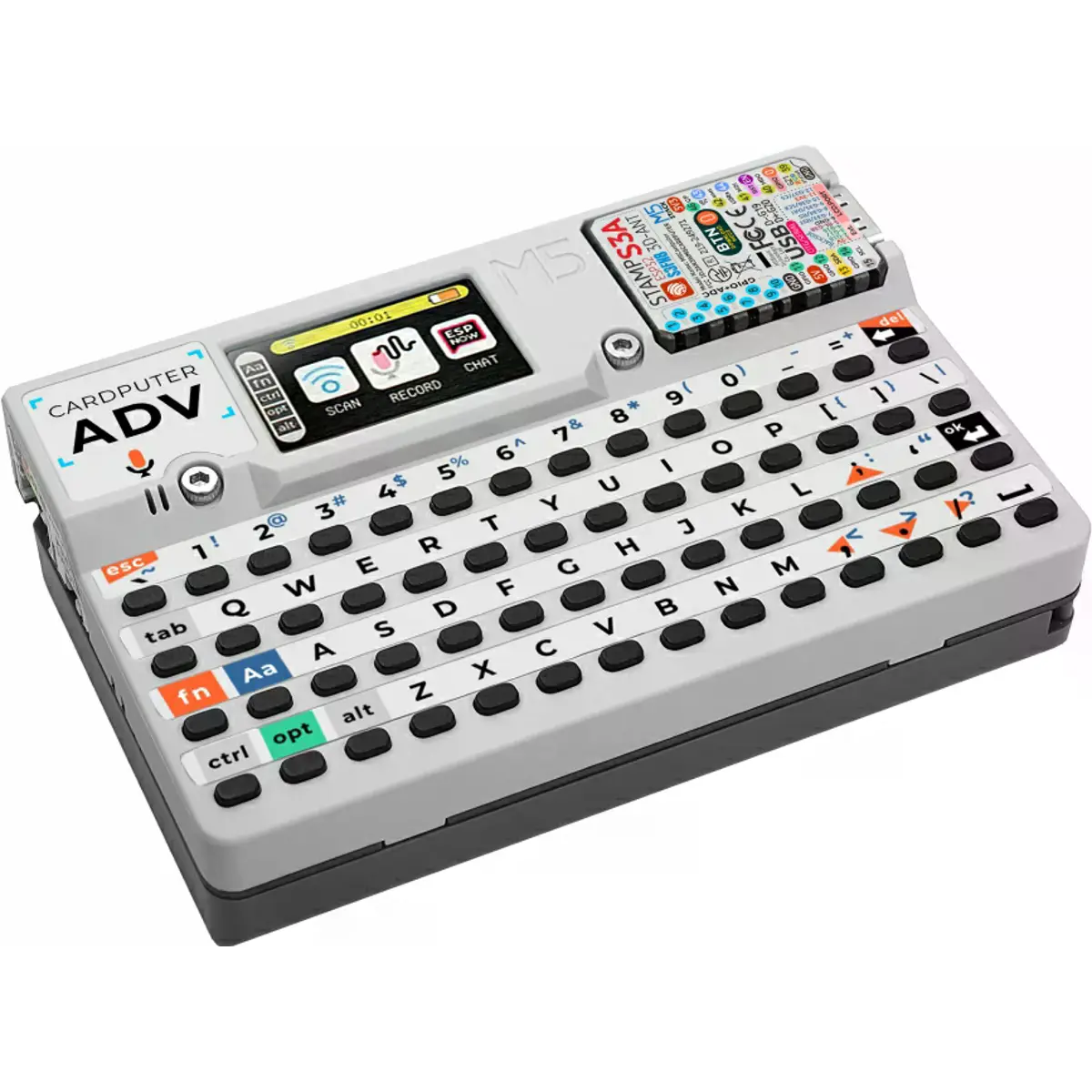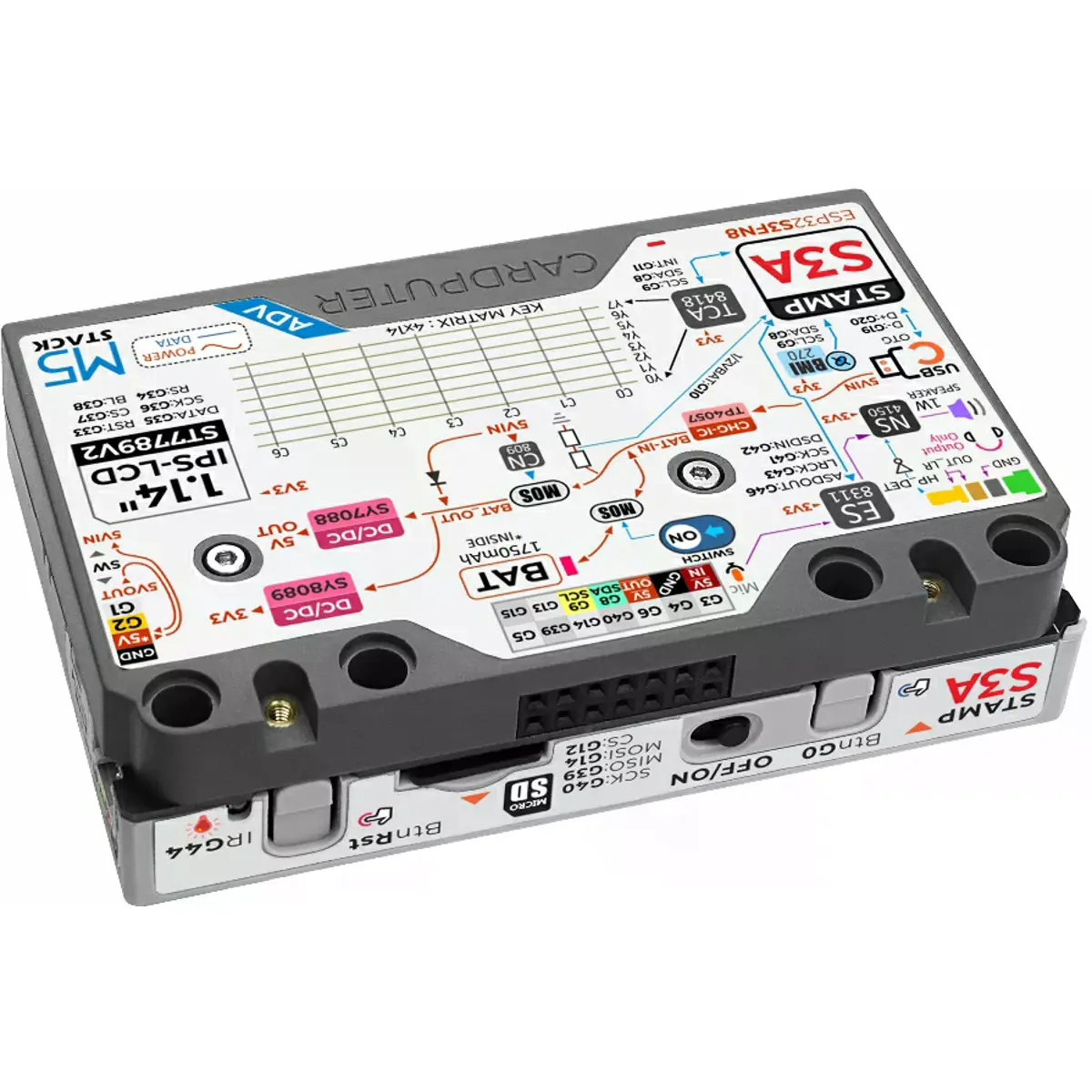 O M5Stack Cardputer Adv é uma plataforma programável compacta, em formato de cartão, concebida para prototipagem rápida, desenvolvimento de sistemas embebidos e aplicações IoT. Baseado no módulo Stamp-S3A com ESP32-S3, combina um ecrã LCD de 1,14" com um teclado físico de 56 teclas, oferecendo uma interface prática para interação direta, testes e controlo em tempo real.